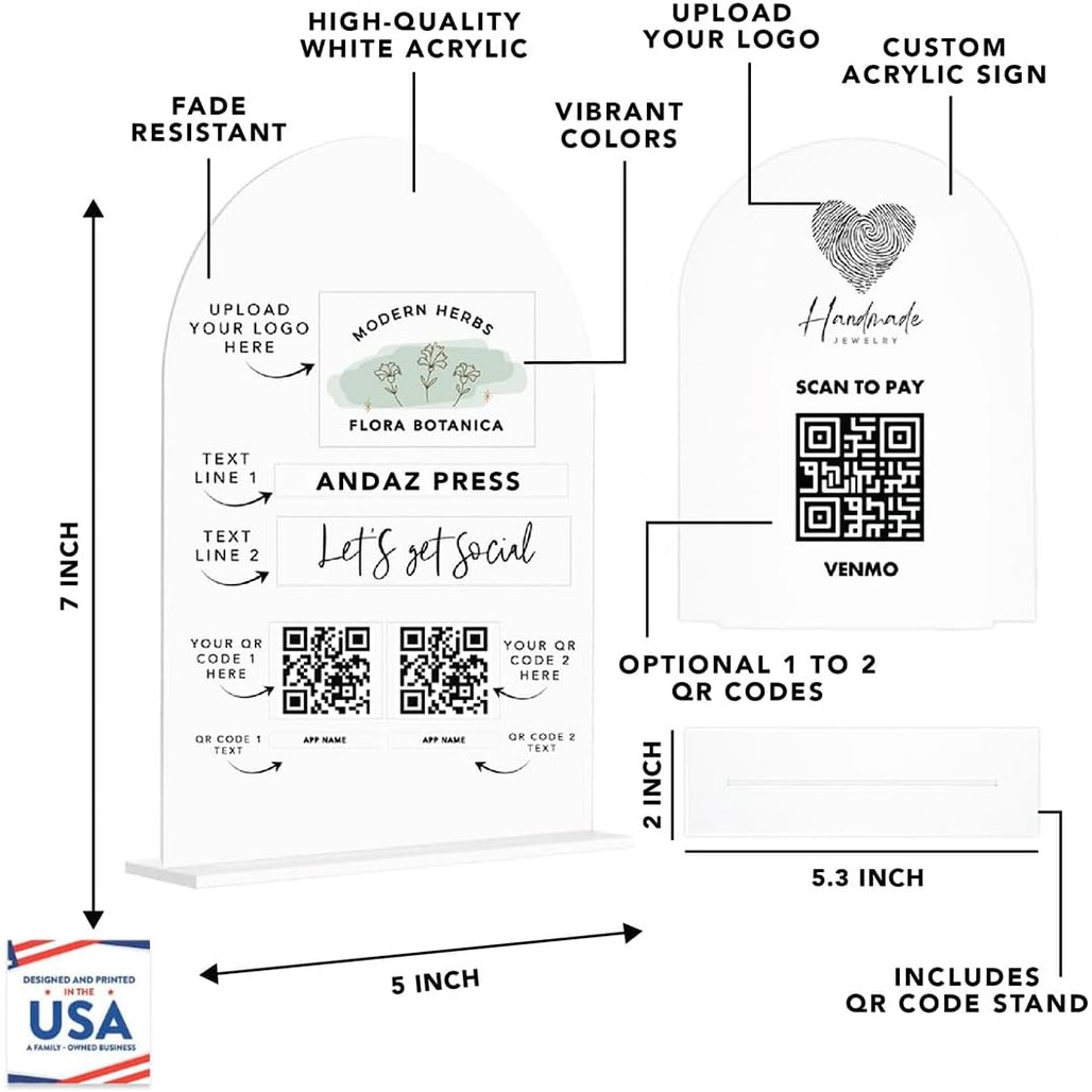 Custom QR Code Sign with Logo for Pop Up Shop, Vendor Booth Display Items, Acrylic Scan To Pay QR Code Sign for Business Personalized Scan QR Code Display Signs for Social Media wi
