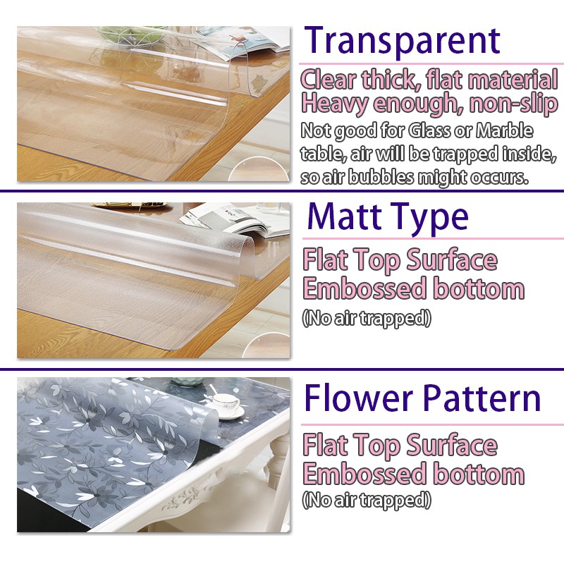 Custom Size Clear Table Cover Soft Glass PVC Table Cloth Anti-Slip Table Mat Scratchproof Oilproof Table Pad