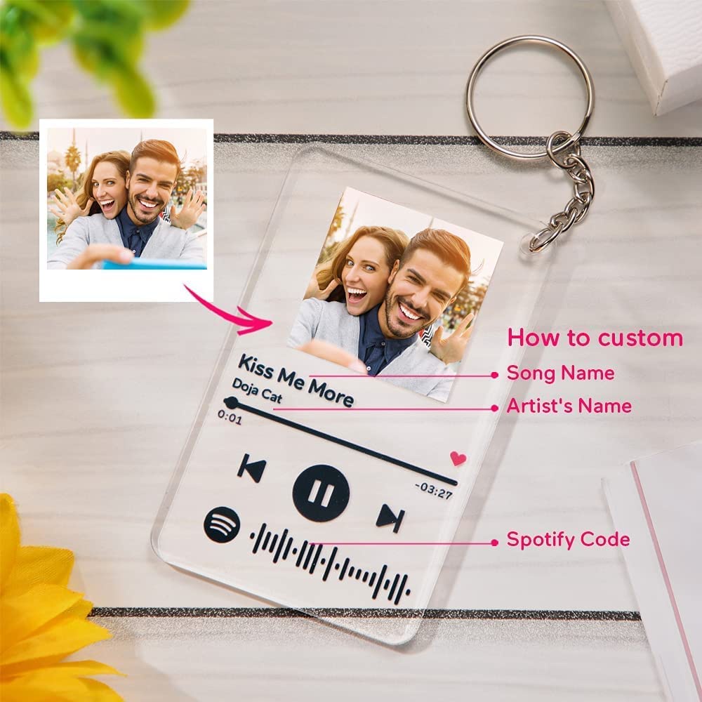 Custom Spotify Keychain with Picture,Custom Scannable Spotify Music Song Code Keychain