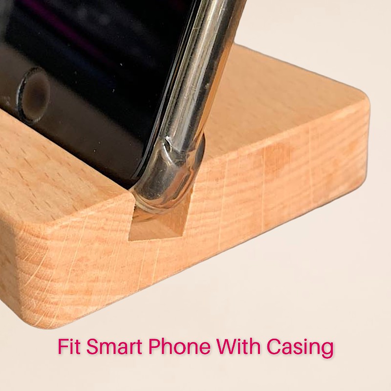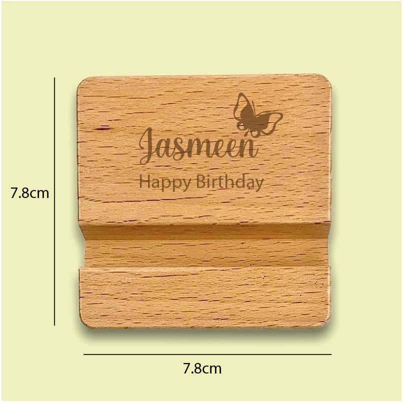 Custom Wood Mobile Handphone Holder With Name Corporate Logo Printing Laser Gift Box Phone Stand Personalisation