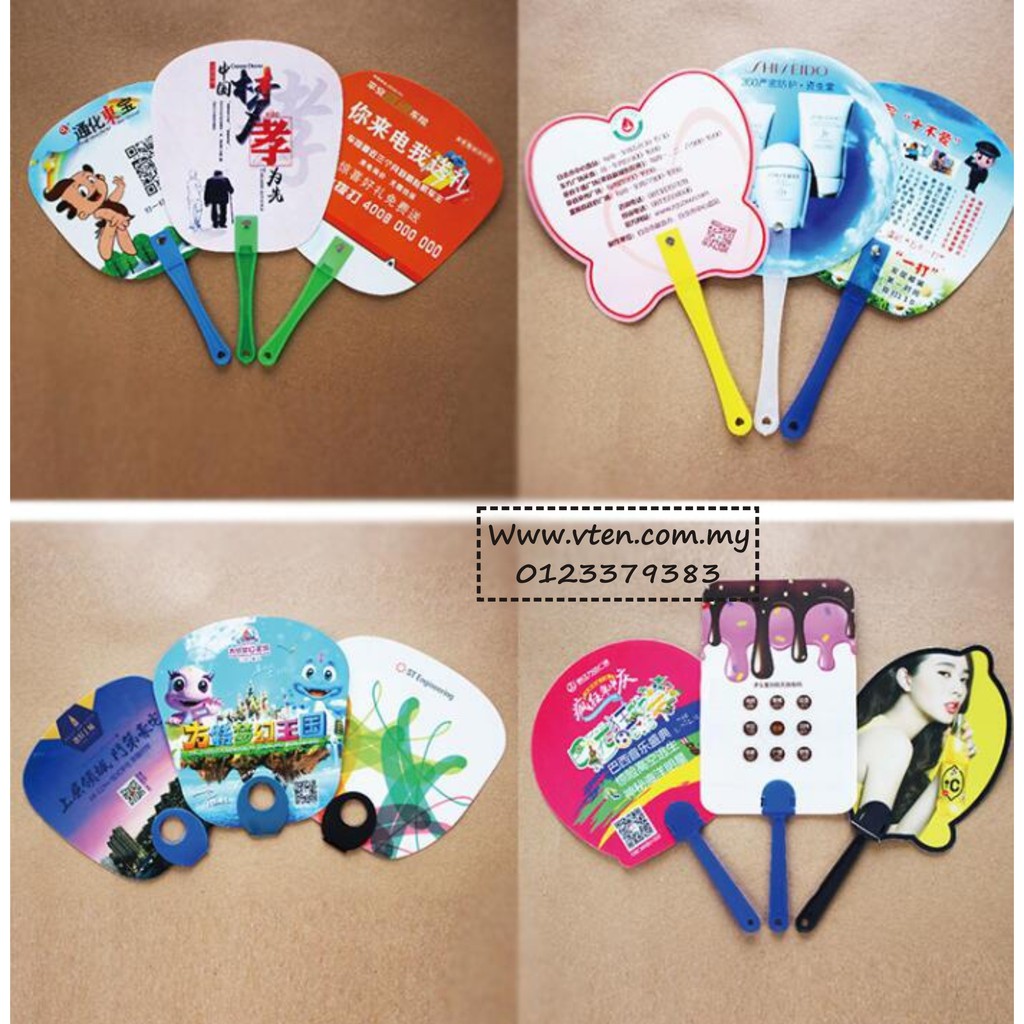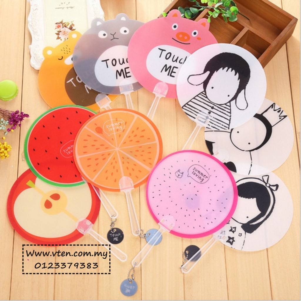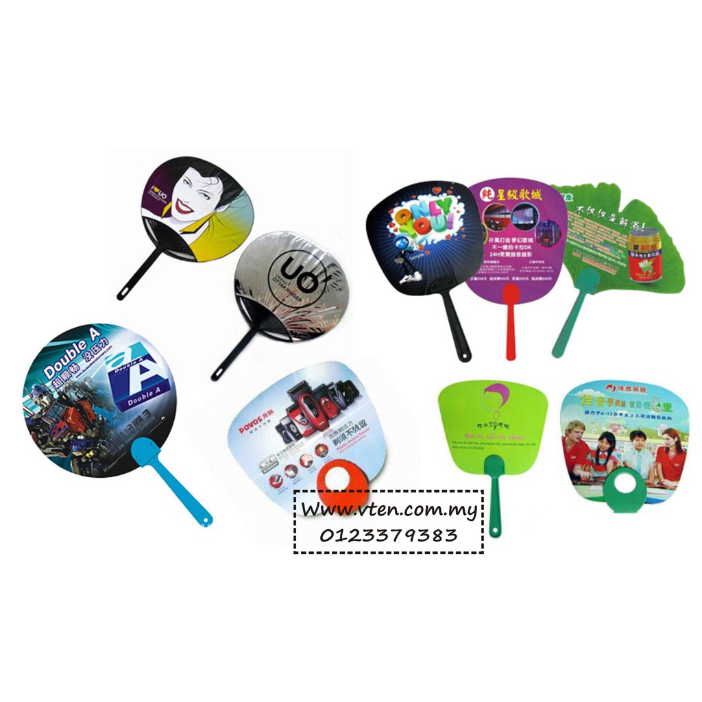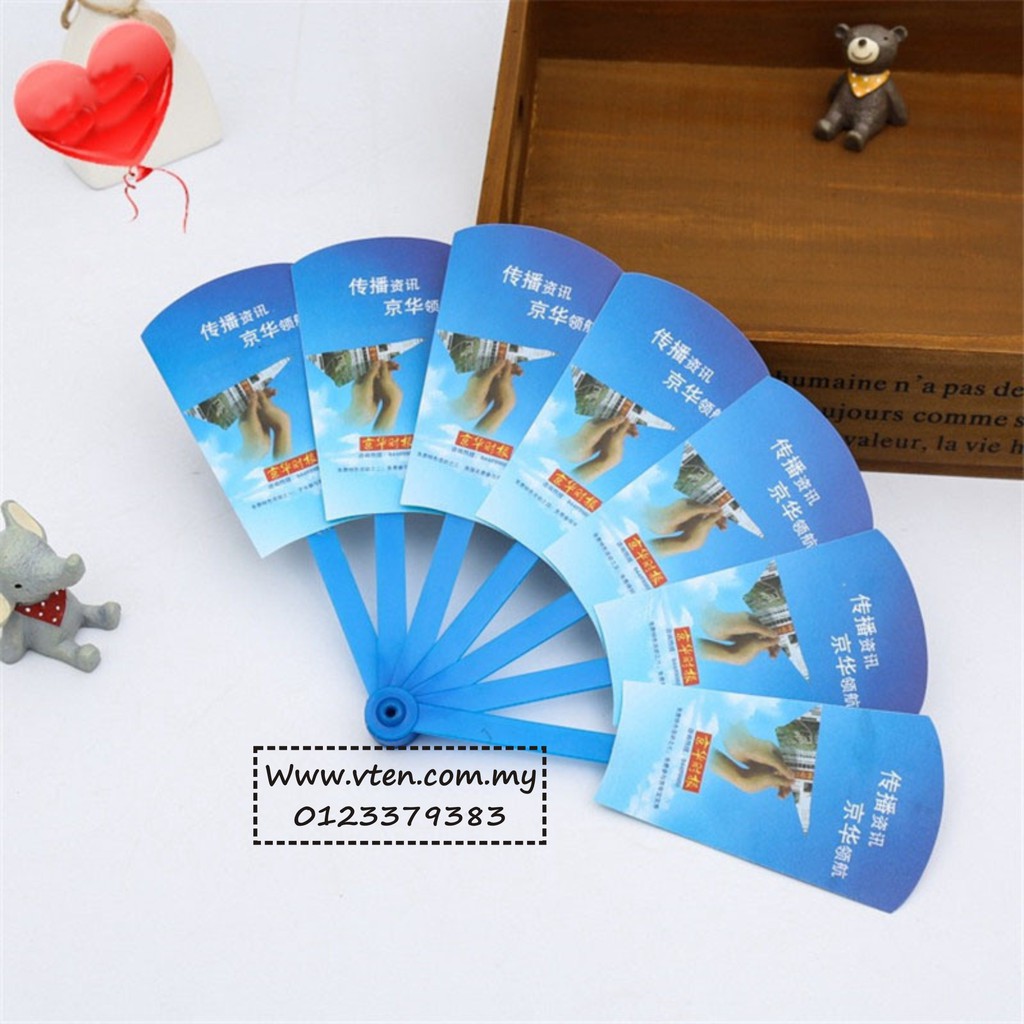 Custom made PVC Plastic Hand Fan Advertising Han Held Fan Customize Cartoon Shape Folding Fan Full Printing