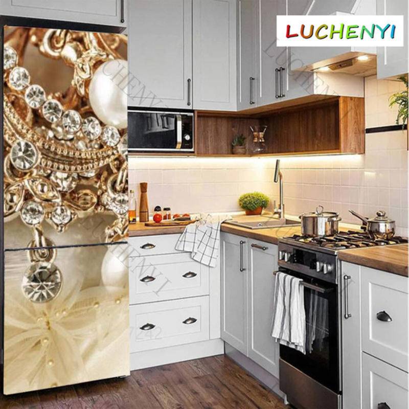 Custom size 3D self-adhesive fridge sticker freezer stickers refrigerator door sticker flower Peacock wall sticker home decor