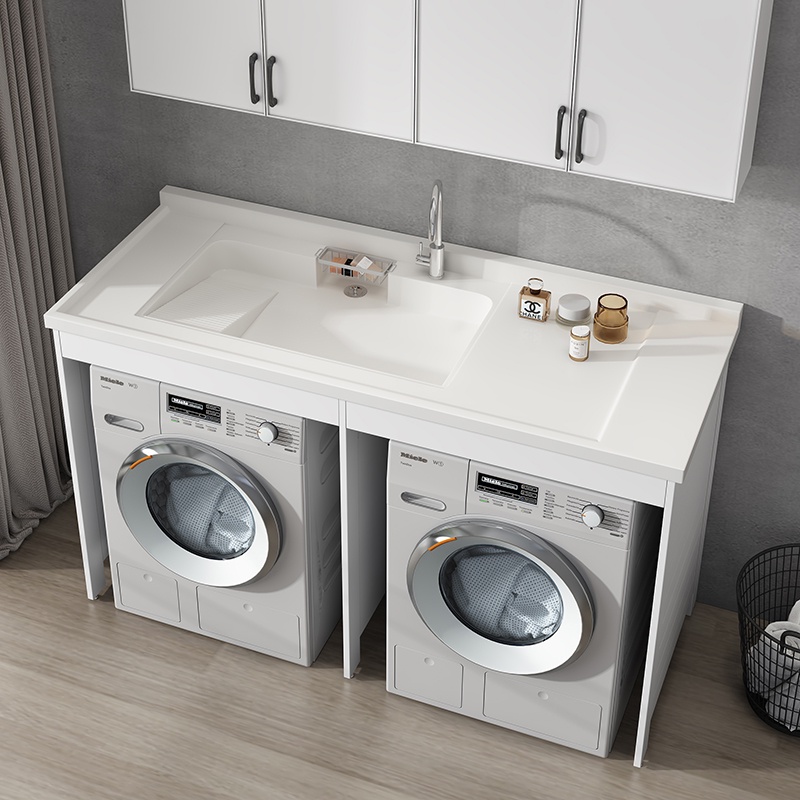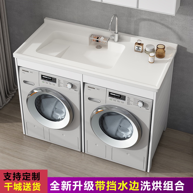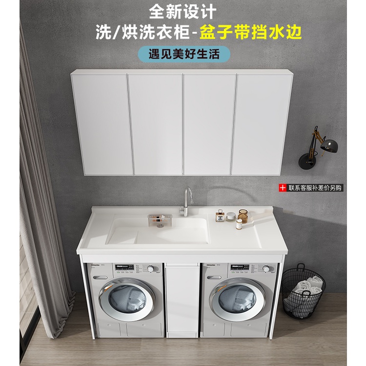 Customized Balcony Double Washing Machine Cabinet with Washboard Combination Alumimum Wash Wardrobe Integrated Laundry T