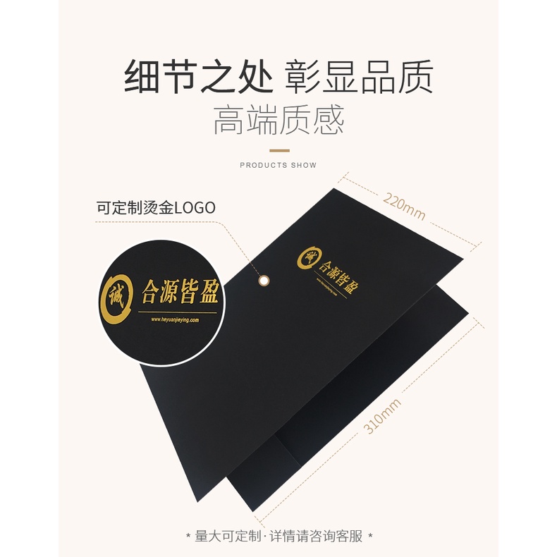 Customized Folder A4 Folder Paper Envelope Bronzing Customized Cover Contract Signed Black Calendar Folder Insert Recitation Data Music Score Small Folder Book Business Vertical Red File Storage Office File Book