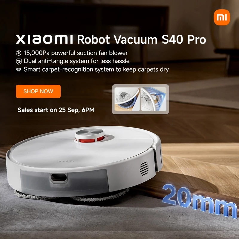 [NEW] Xiaomi Robot Vacuum S40 Pro |15000Pa Powerful Suction | Dual Anti-Tangle System | Smart Cleaning | Wet Dry Vacuum