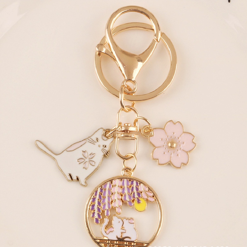 Cute Animal Keychain Flower Moon Cat Key Ring Enamel Key Chains Friendship Gifts for Women Men Handbag Accessorie DIY Jewelry