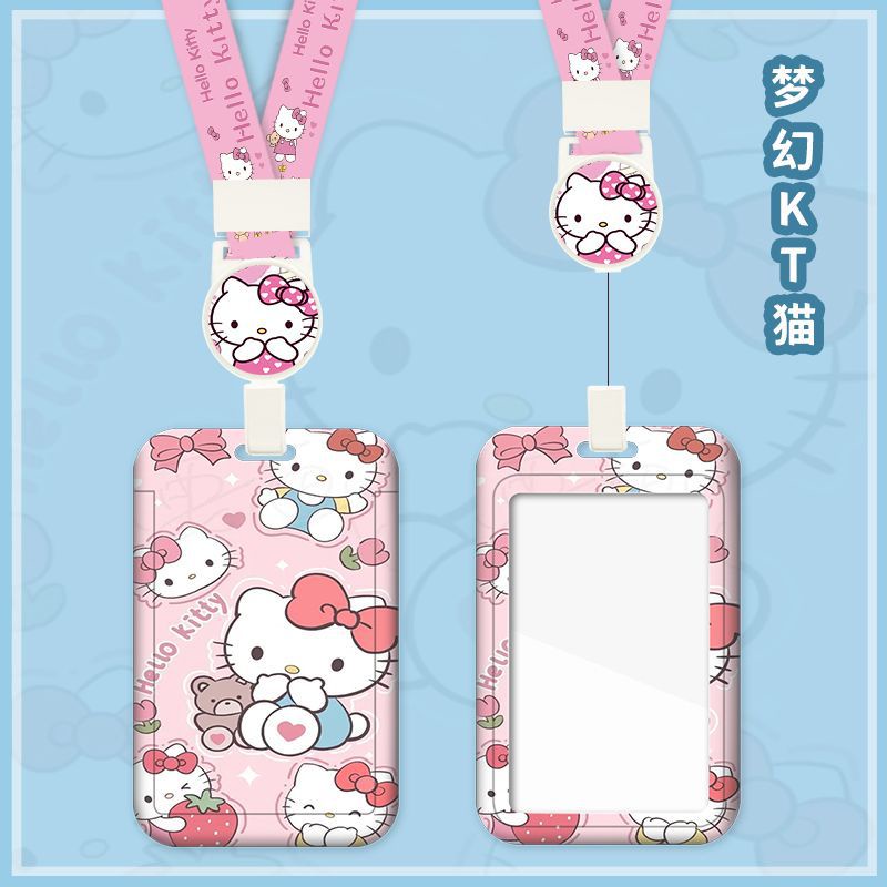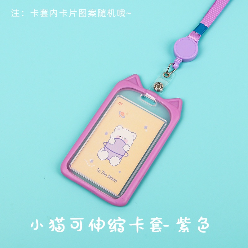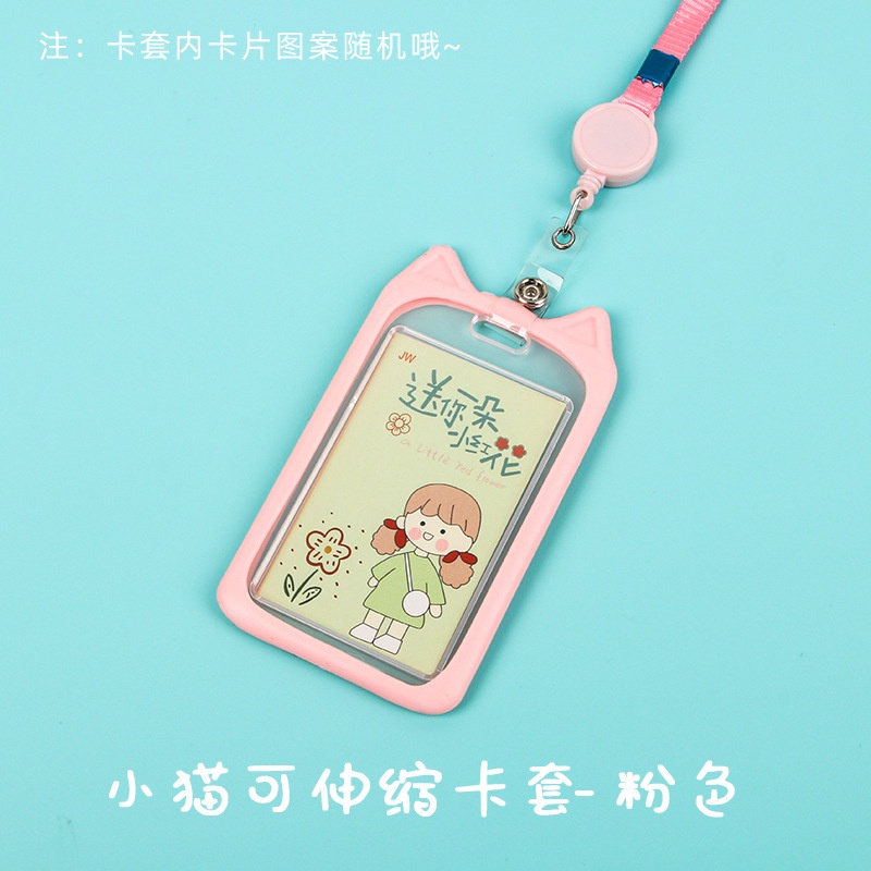 Cute Card Holder Cartoon Cat Bus Card Case ID Card Sleeve Retractable Reel Lanyard Identity card holder string