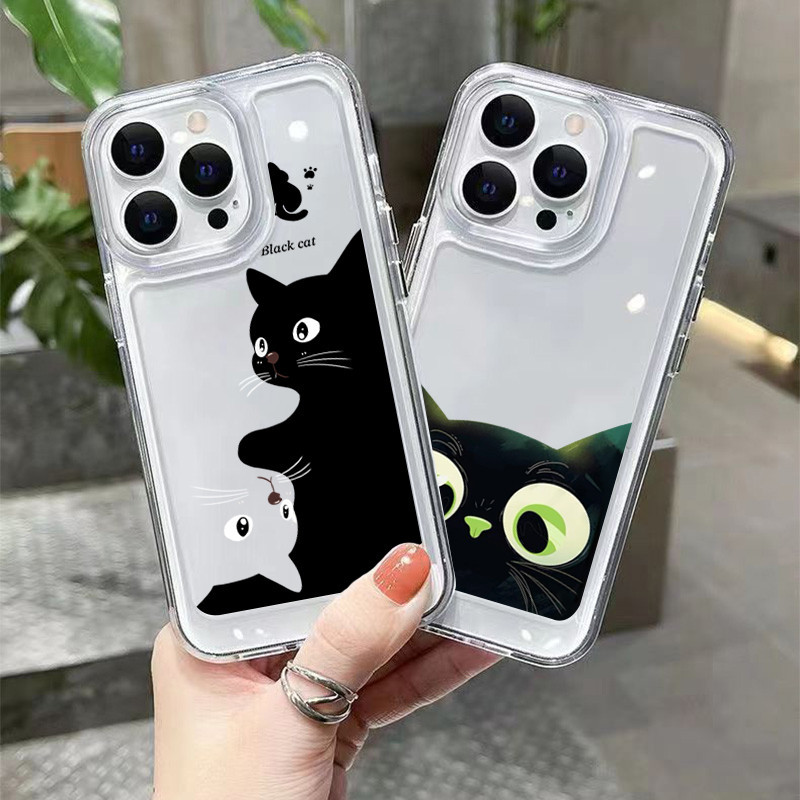 Cute Cartoon Black Cat Phone Case For Galaxy A36 A54 A34 A56 A14 A55 A05 A06 A15 A25 A52 A52S A53 A33 A23 A13 A32 Transparent TPU Soft Cover