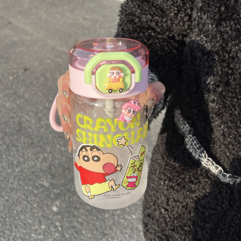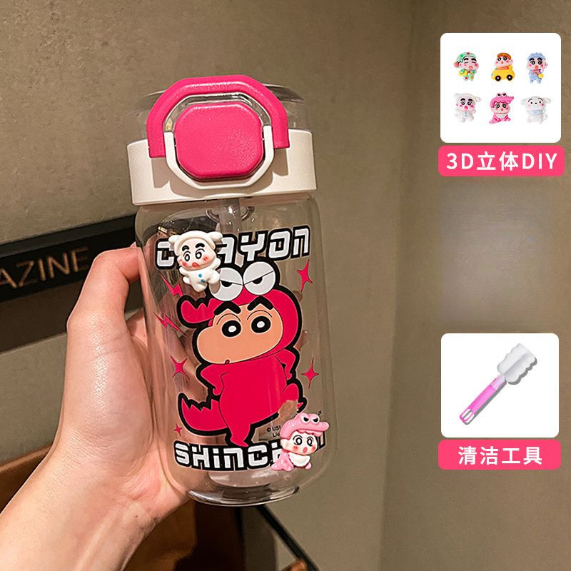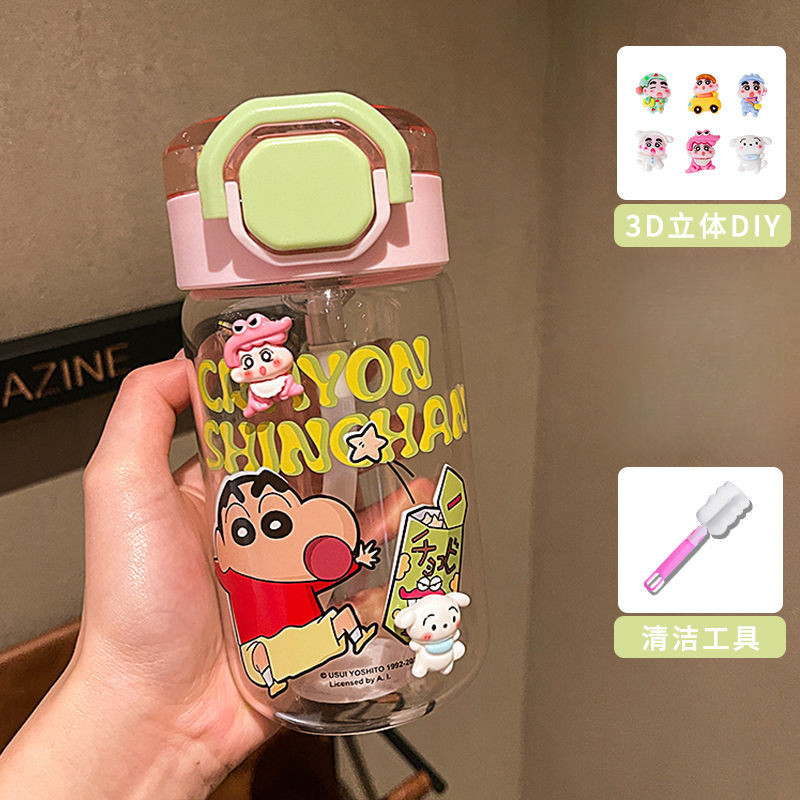 Cute Cartoon Crayon Xiaoxin Glass Summer Weather Water Cup Good-looking Female Students School Home Office Portable and Compact High Temperature Resistant Water Cup