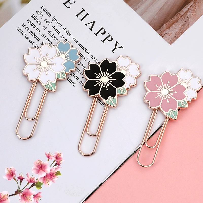 Cute Cartoon Sakura Flower Paper Clips Metal Paperclips Bookmarks Clips School Supplies Kawaii Office Accessories Gift