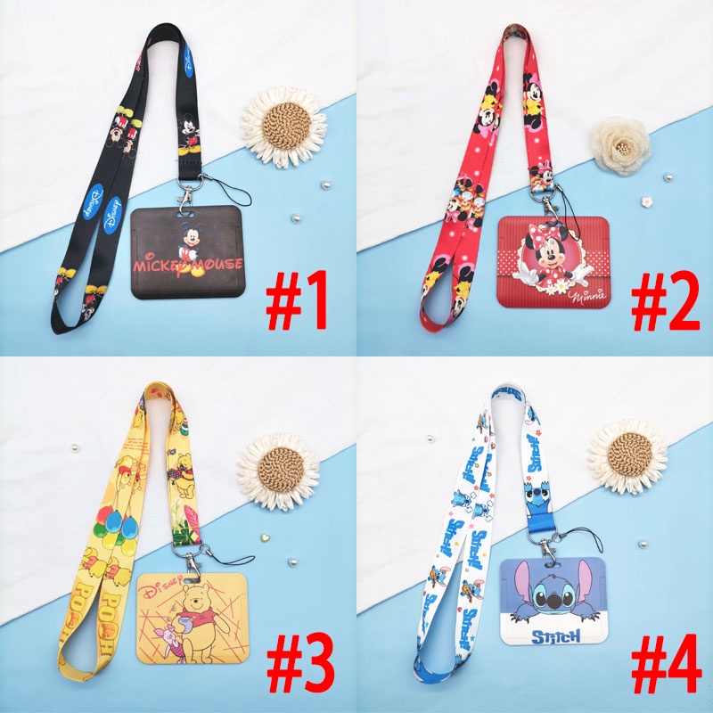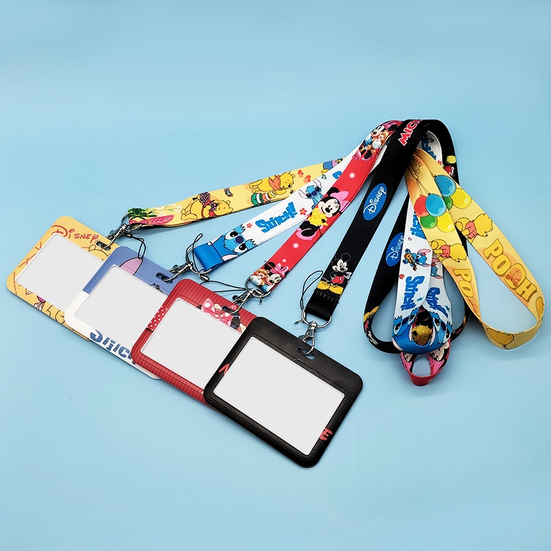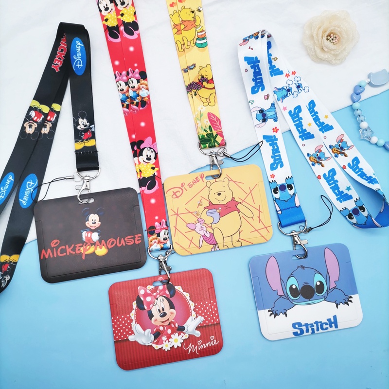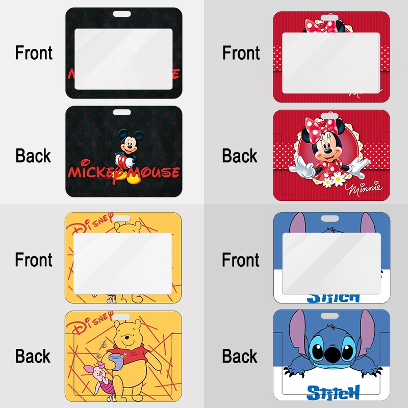 Cute Cartoon Stitch Mickey Minnie Card Holder Winnie The Pooh Horizontal Bus Name Tag School ID Card Protector Case For Kids Gift