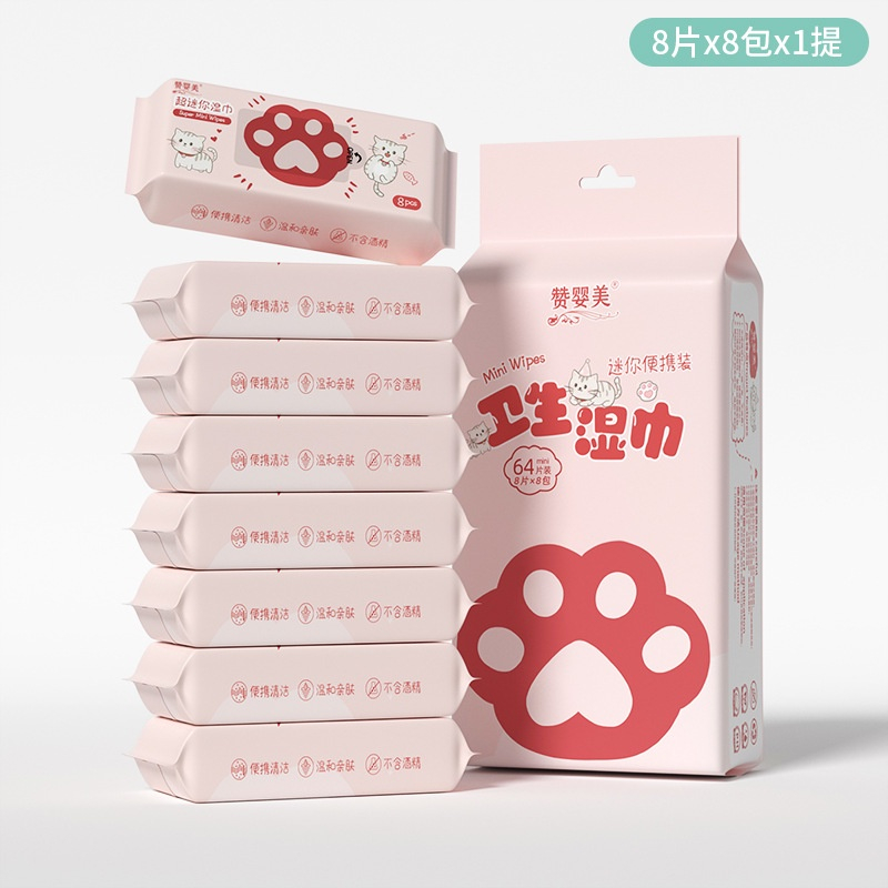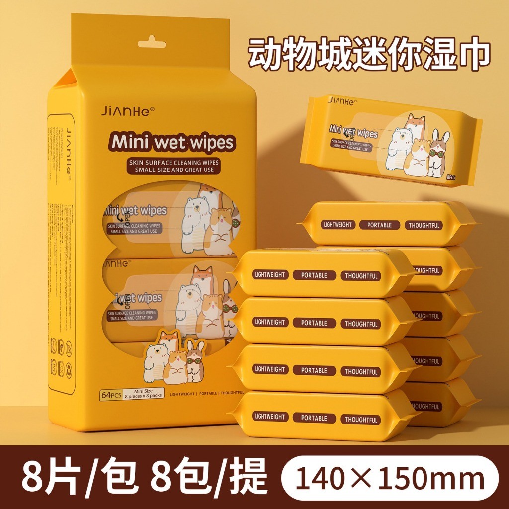 [4in1/6in1/8in1/24in1] Tisu Mini Cute Cartoon Wipes Portable Wet Tissue Wipes Ensure Mouth & Hand Hygiene Cleaning Wipes