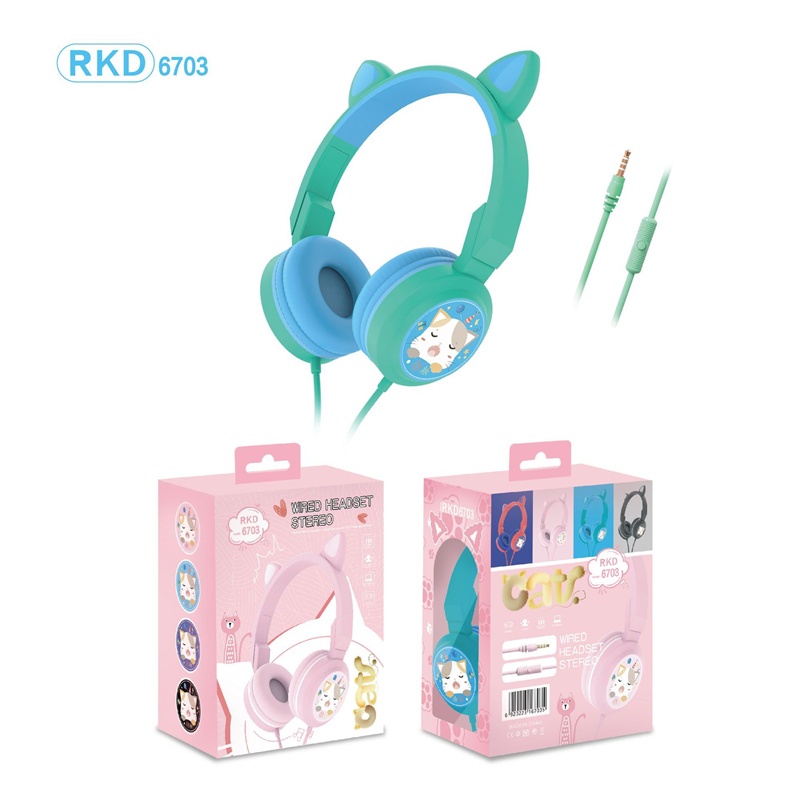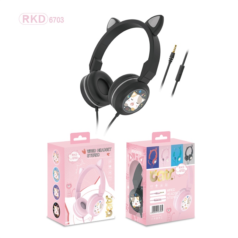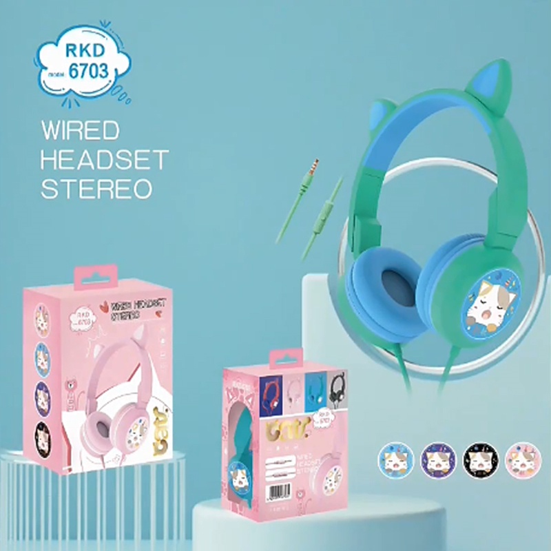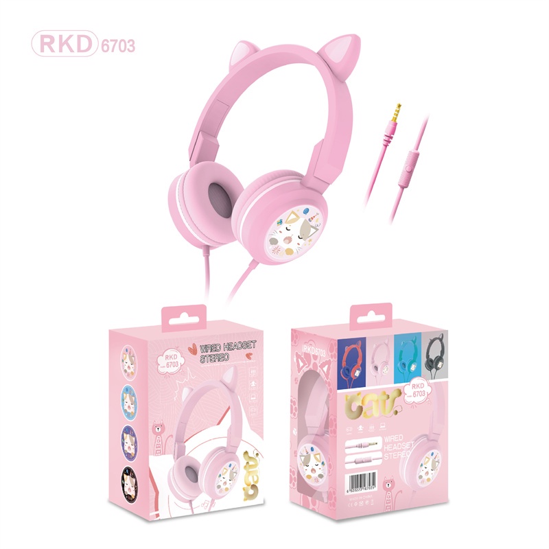Cute Cat Ears Kids Headphone with Mic Can Control Wired Headphone Stereo Music Gamer Phone Laptop Tablet MP3 Headset Gift