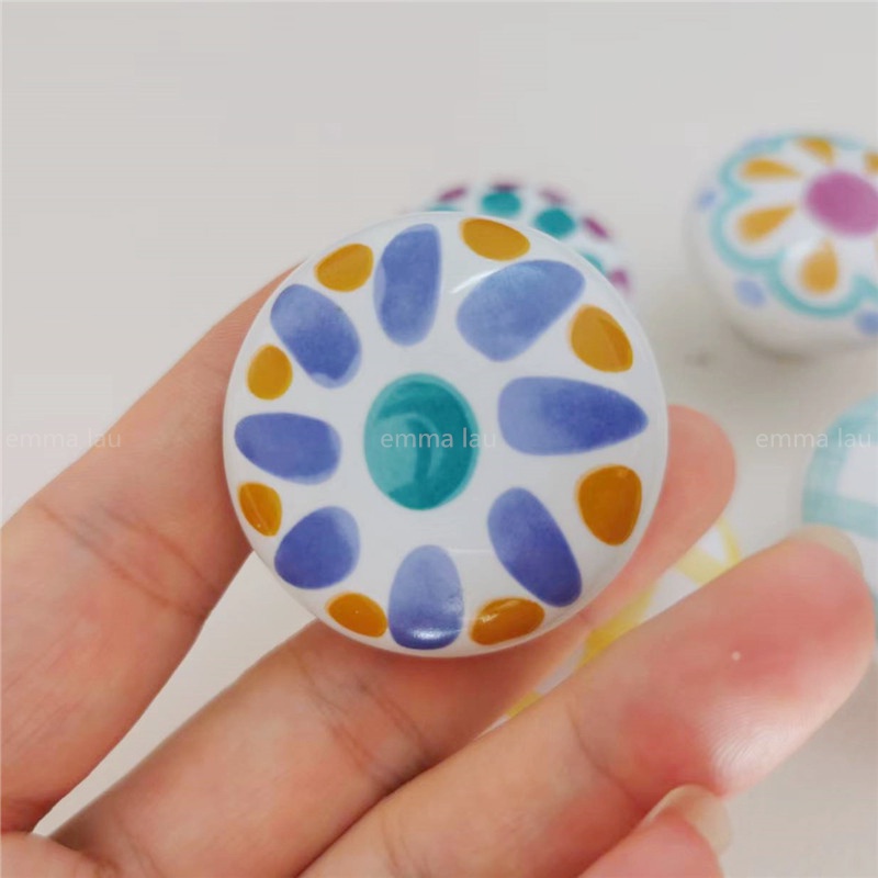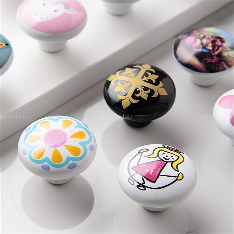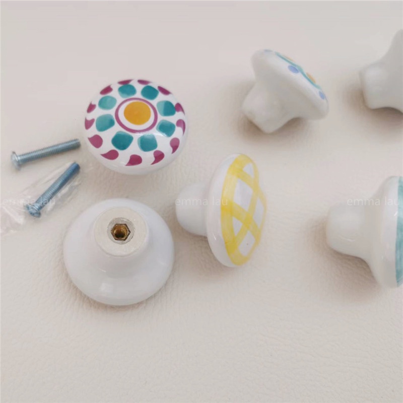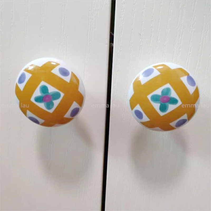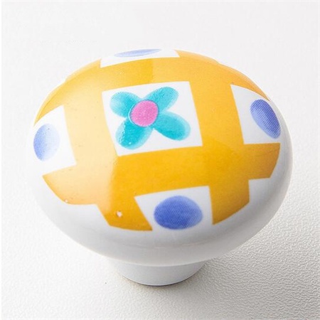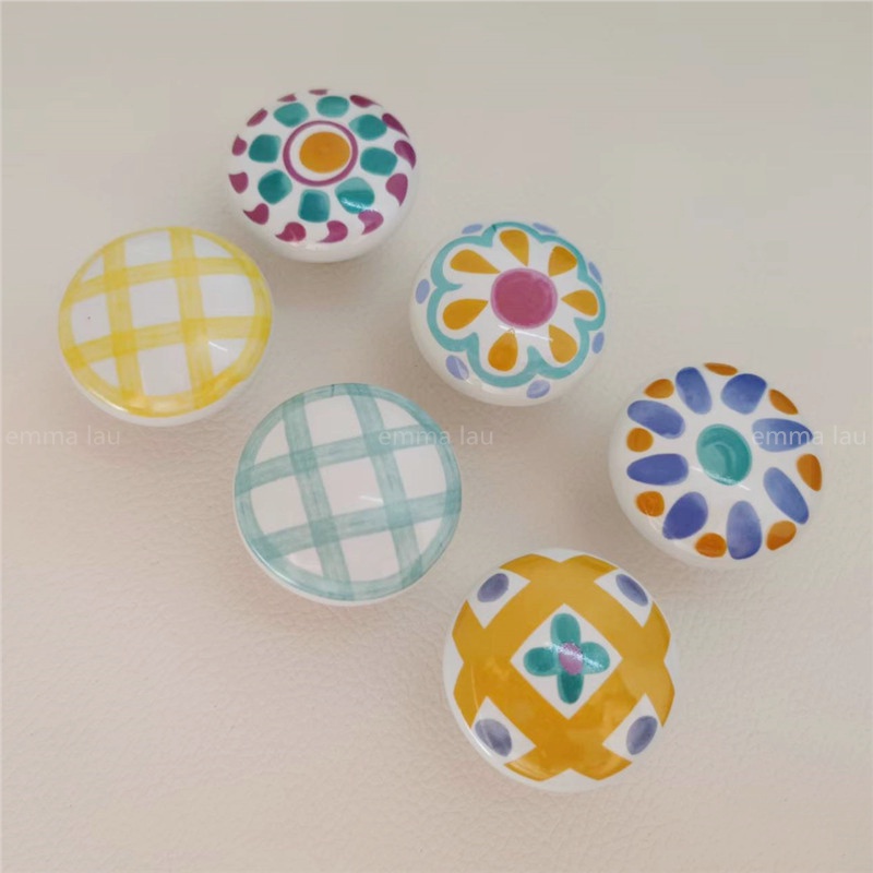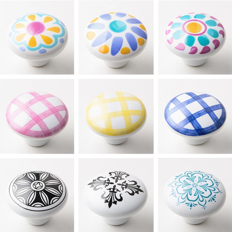 Cute Ceramic Round Knob and Handle Single Hole Handles Lattice Pulls Cabinet Door Knobs Furniture Drawer Closet Knob