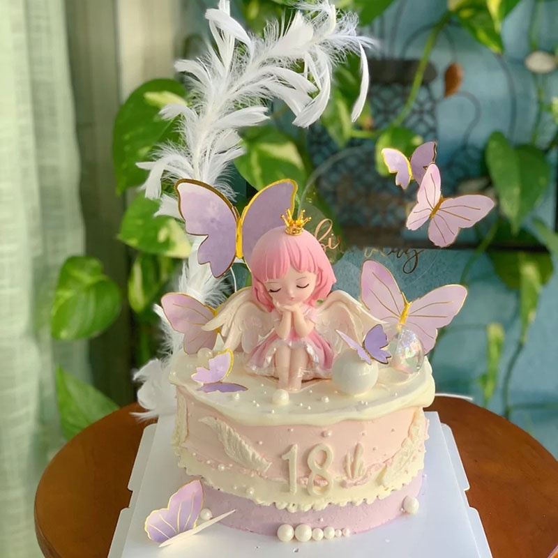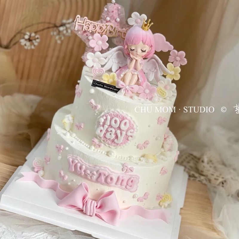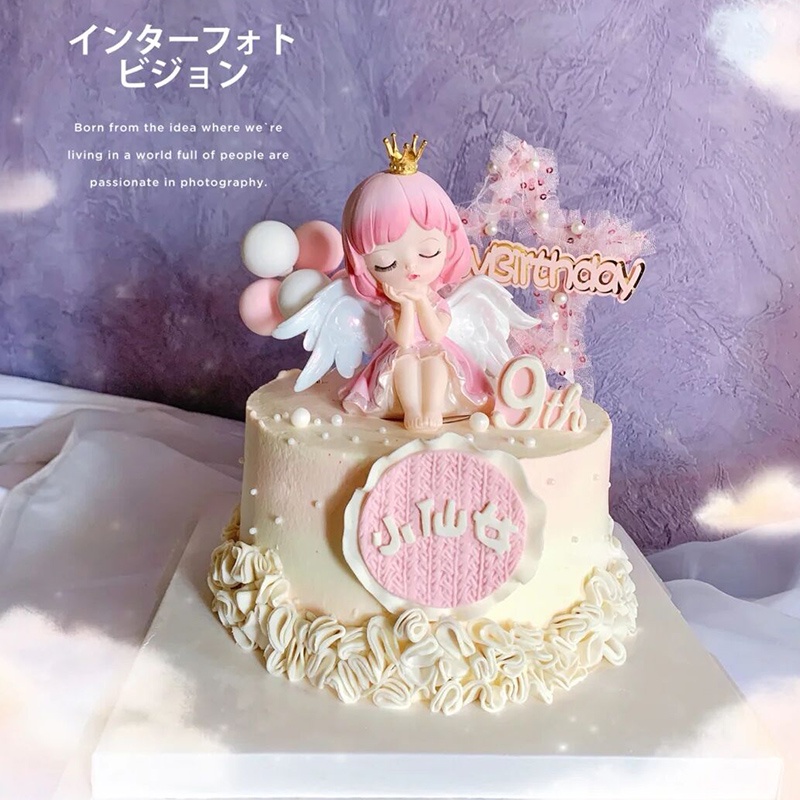 Cute Cher Little Princess Cake Decorating Ornament Dream Mesh Happy Birthday Cake Decorating Top Hat Wings Angel Princess Cake Girl 1st Birthday Baking Cake Decorating Supplies