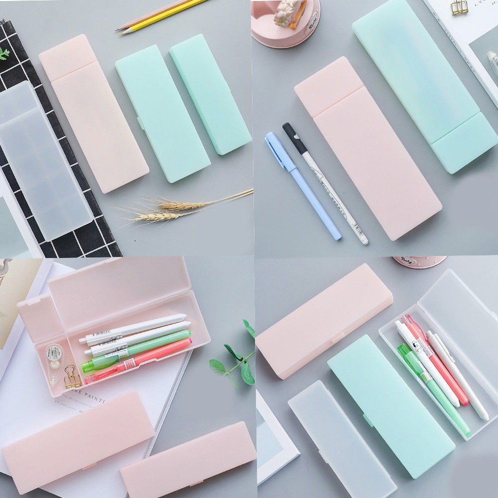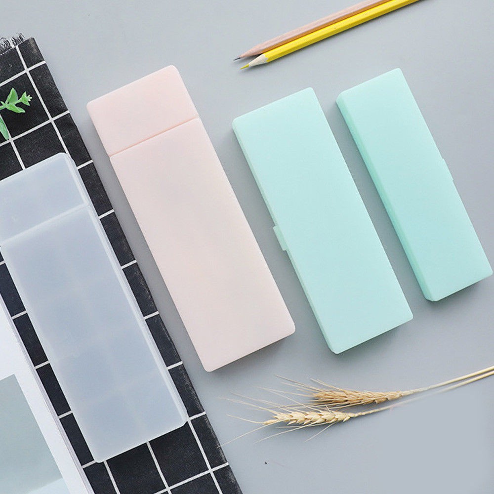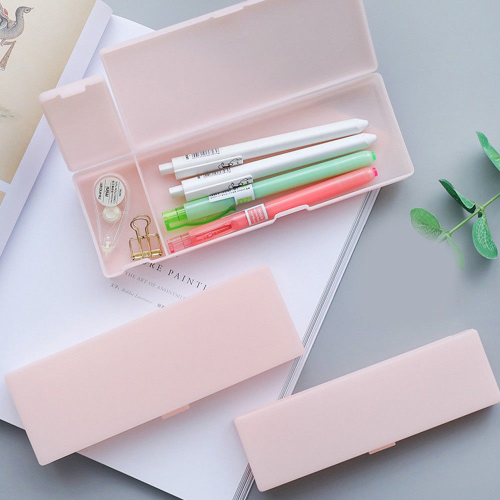 Cute Clear Plastic Pencil Case Pen Box Student School Stationery With Divided Storage Compartments Office Supplies
