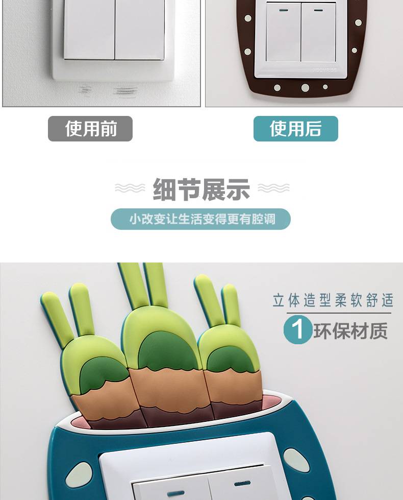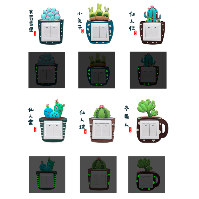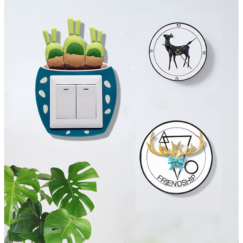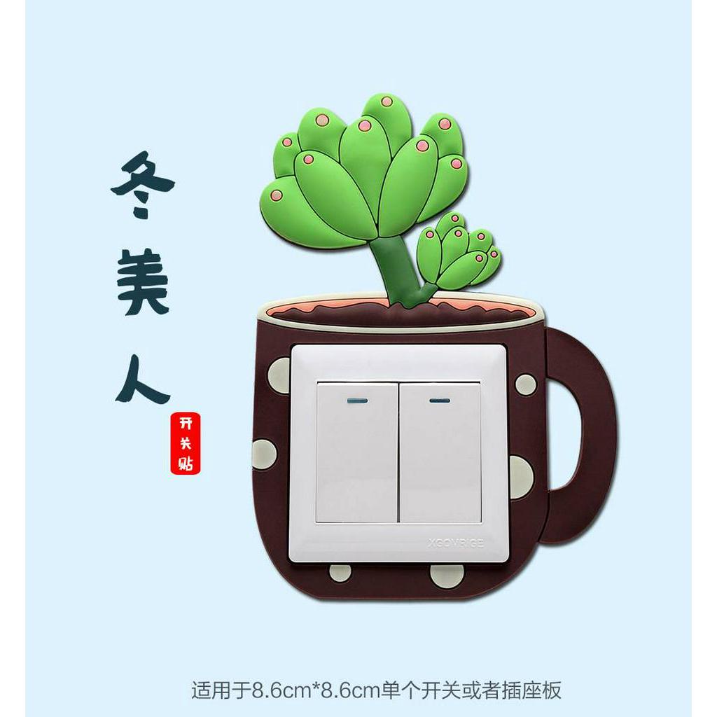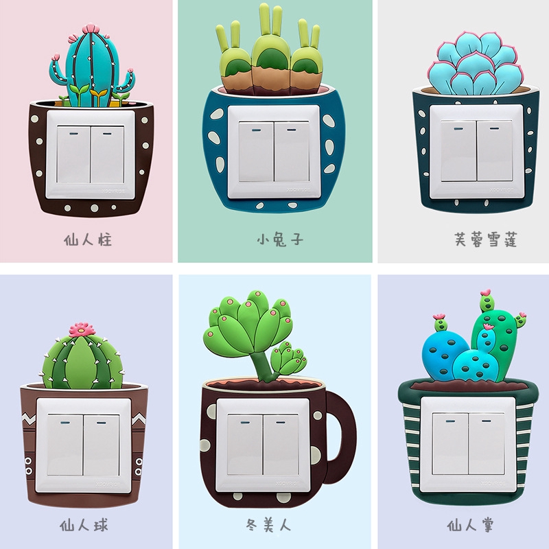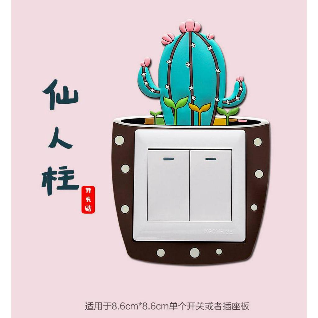 Cute Cover Wall Socket Light Switch Home Decoration Set Cactus Switch Cover Socket Wall Hiasan Soket Plug Deco Dinding