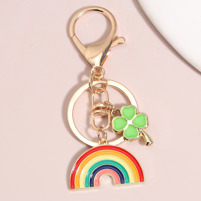 Cute Enamel Keychain Rainbow Four Leaf Clover Key Ring Lucky Key Chains
