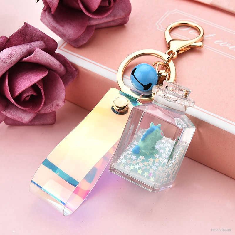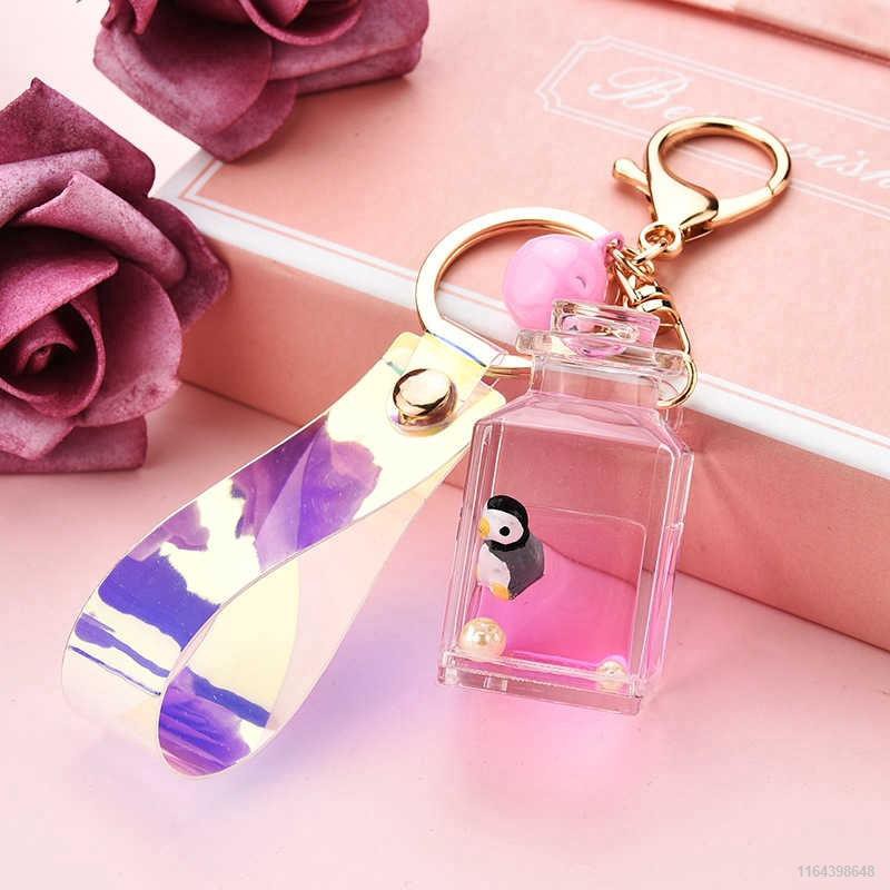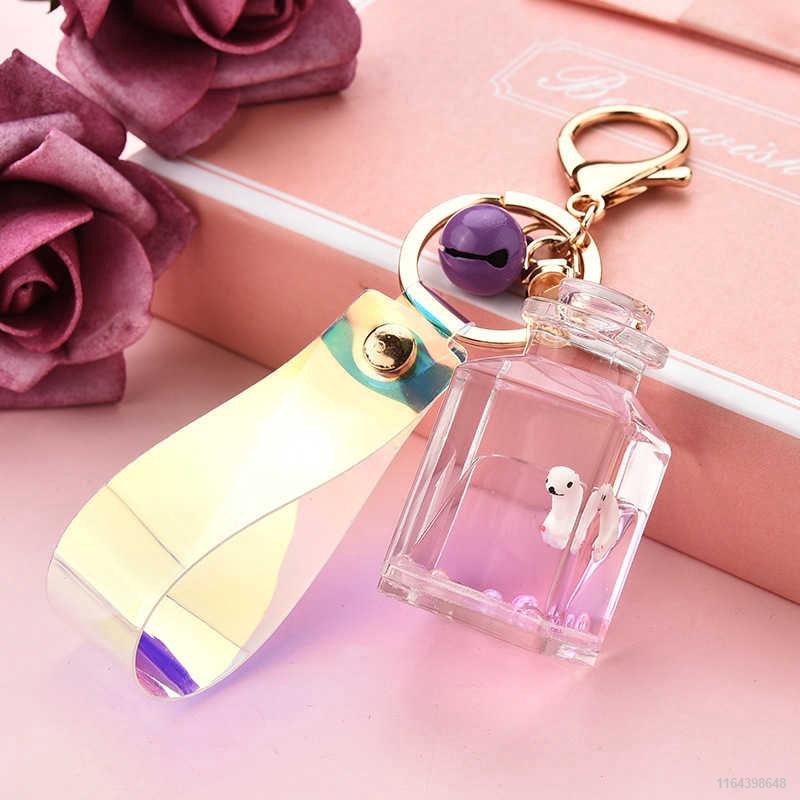 Cute Floating Marine Doll Keychain Creative Water World Animal Quicksand Milk Bottle Key Chain Bag Pendant