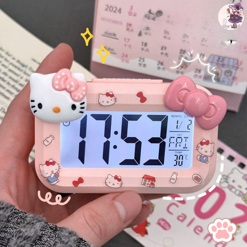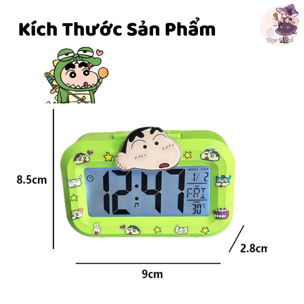 Cute Hello Kitty / Shin Chan Desk Alarm Clock - LED Calendar Time Display Clock with Sticker
