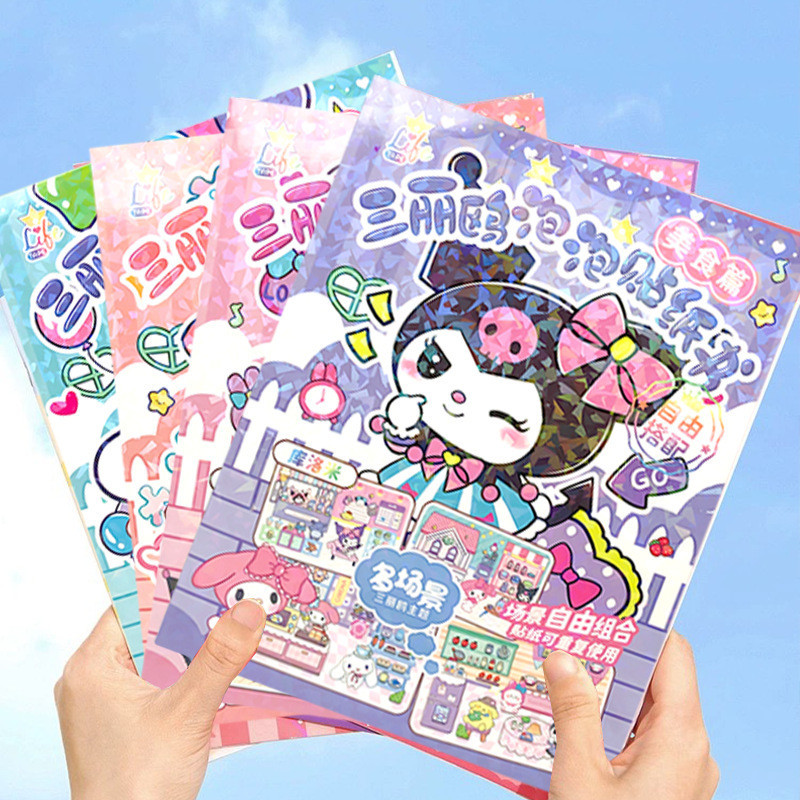 Cute Kuromi Paper Doll House Book Set Cinnamoroll Bubble Sticker Anime Melody Dress Up Sticker Book for Kids Stress Reliever Toy