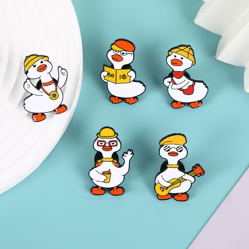 Cute Little Duck Enamel Pins Funny Duck Brooch Badges Lapel Pin Cartoon Animal Cool Jewelry Gift for Girls Friend Kids
