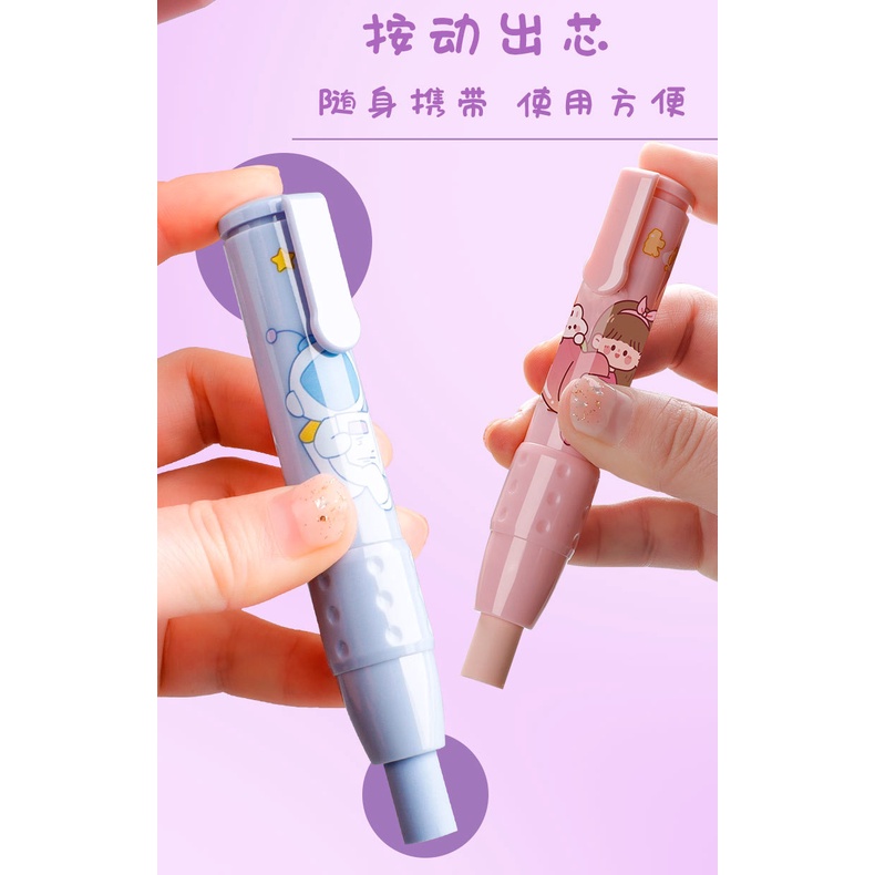 Cute Mechanical Eraser for Student Children Clean and Stretchable Pen Type Eraser Kid School Stationery