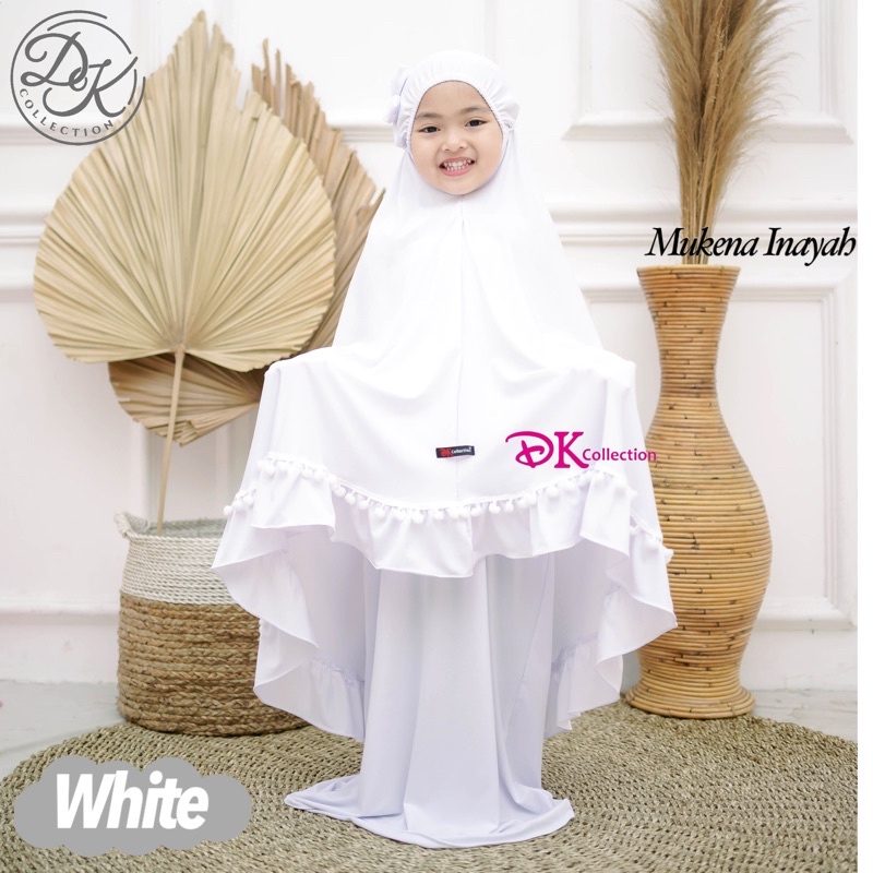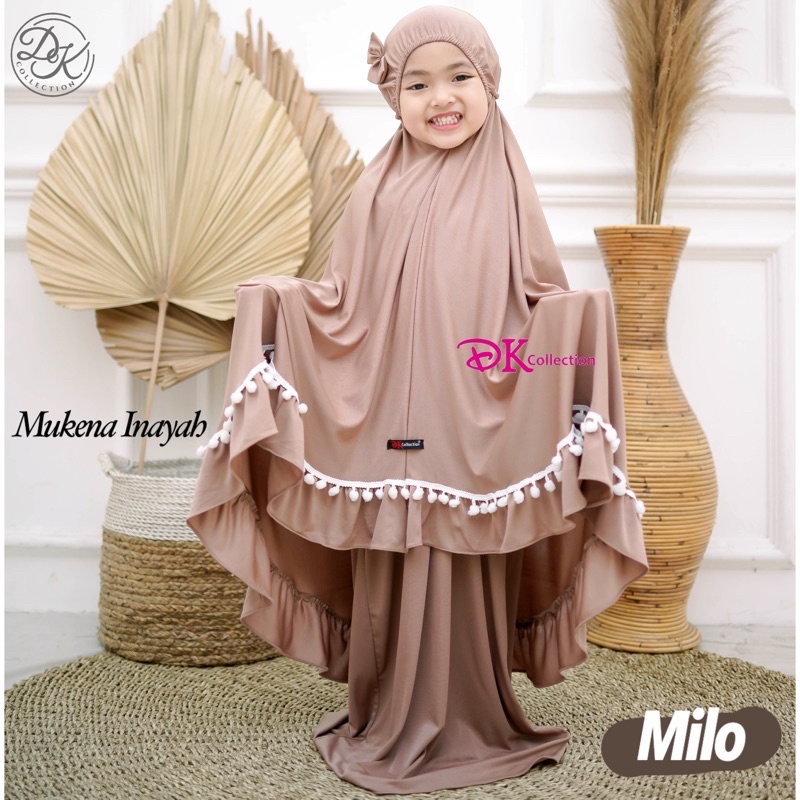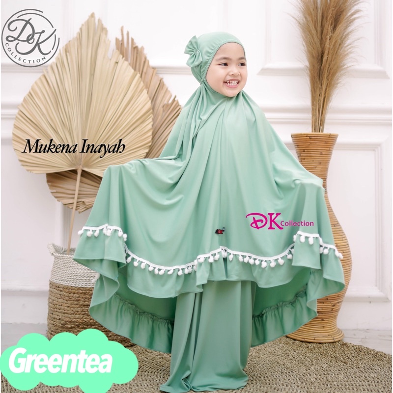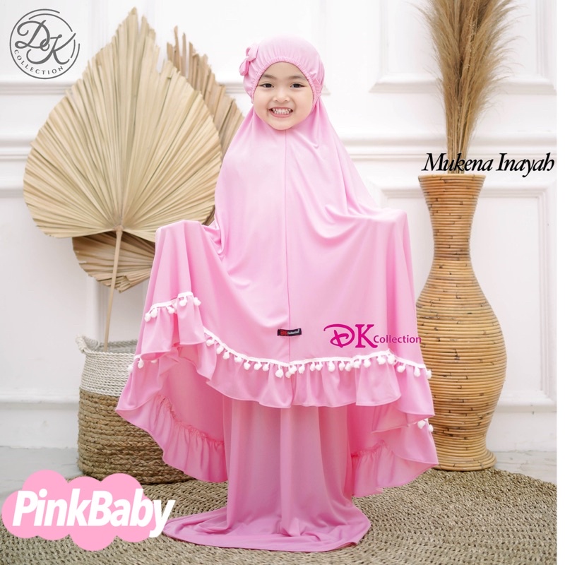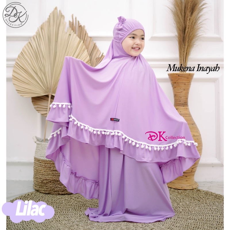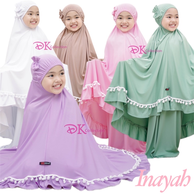 Cute INAYAH Children's Prayer Robe Telekung Budak with Pompom and Ribbon