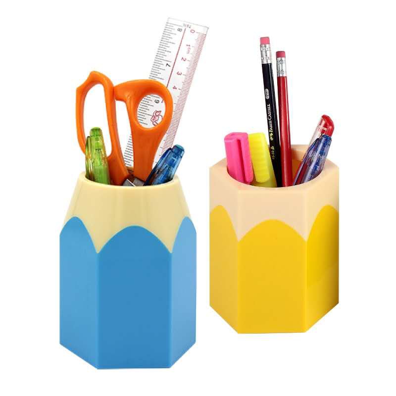 Cute Pencil Design Plastic Pen Stand / Pen Holder Storage Case Clear Plastic Box Desk Pen Pencil Organizer