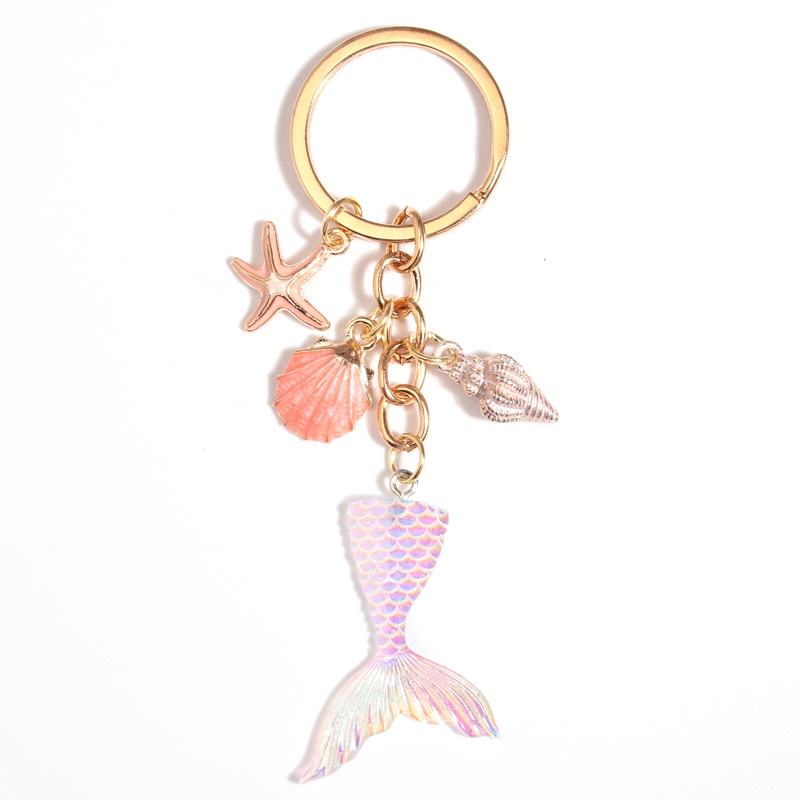 Cute Sea Keychain Starfish Shell Conch Heart Key Ring Mermaid Tail Key Chains Summer Gifts