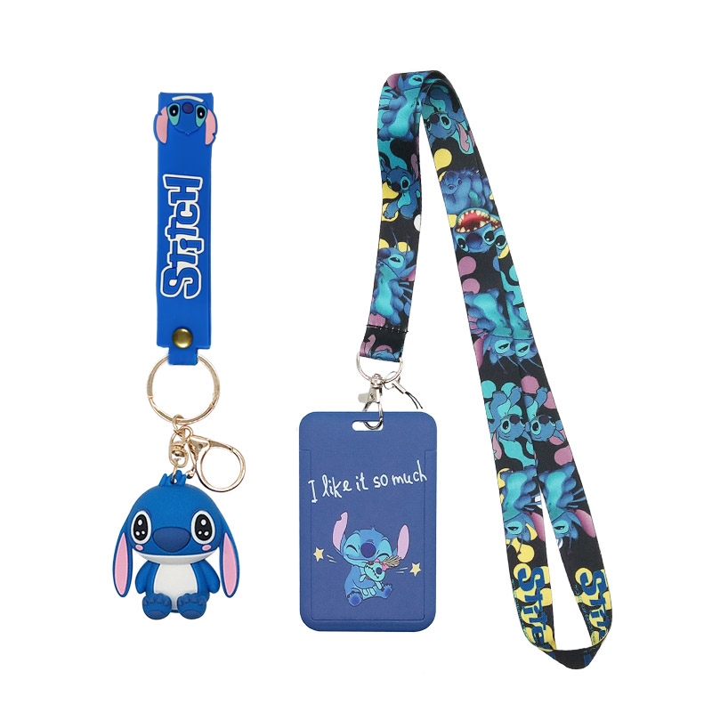 Cute Stitch ID Card Badge Holder with Neck Lanyard Phone Case Strap For Credit Cards Bus Card Protector Keyring Sling Accessories