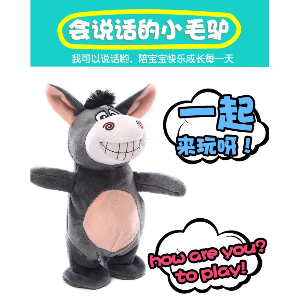 Cute Talking Donkey Toy Stuffed Animal Mimicry Talking Donkey Early Learning Kids Gift Baby Toy Remote Control Stuffedd