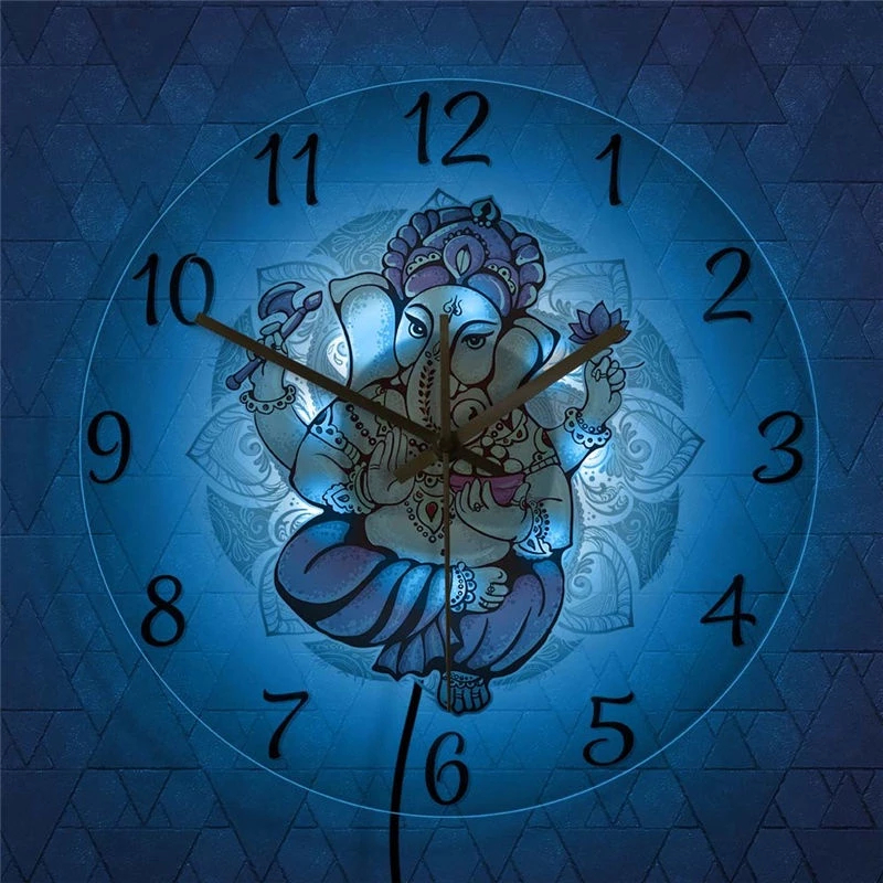 Cute Toddler Lord Ganesha Silent Wall Clock, Hindu God Indian Festival of Ganesh Chaturthi Ganapati Decorative Wall Watch Clock Non Ticking Vintage Decorative Wall Clock for Living