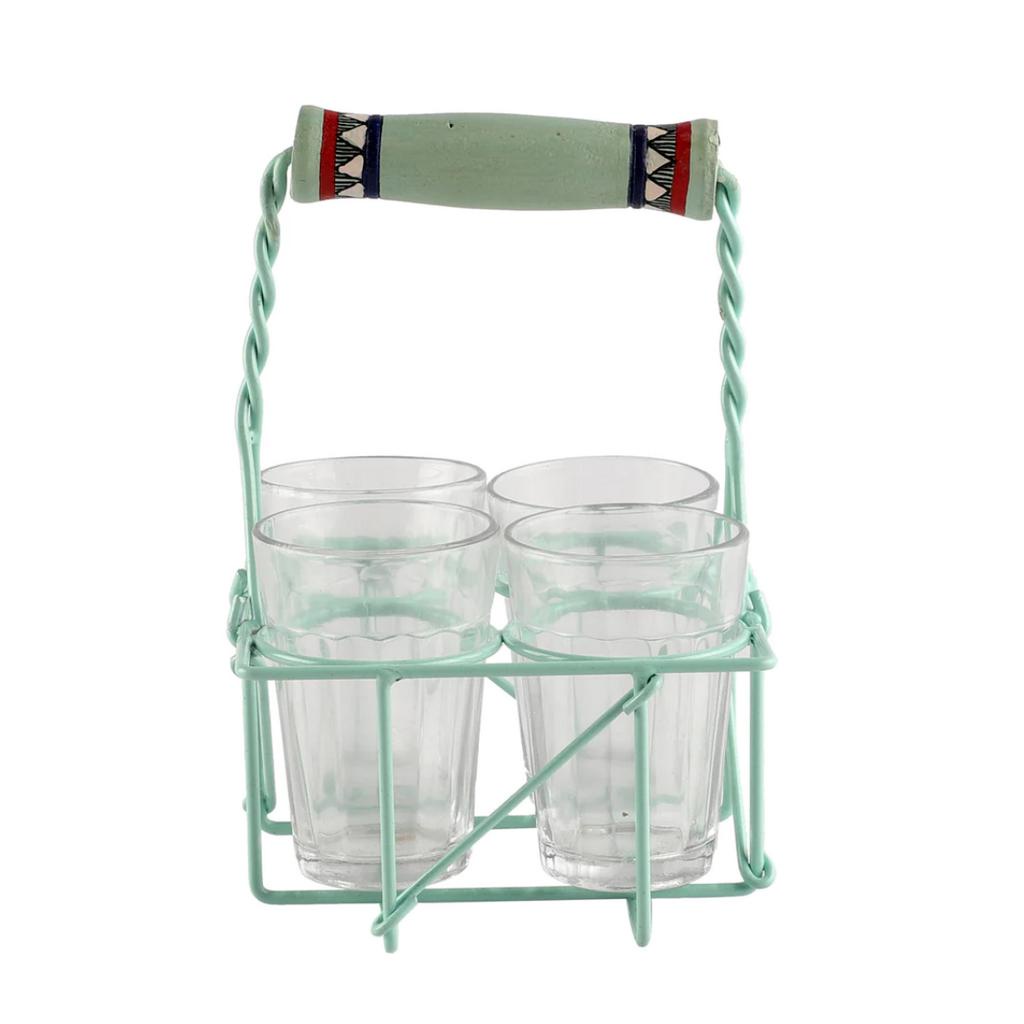 Cutting Chai Holder with 4 Glasses (Glasses Included)
