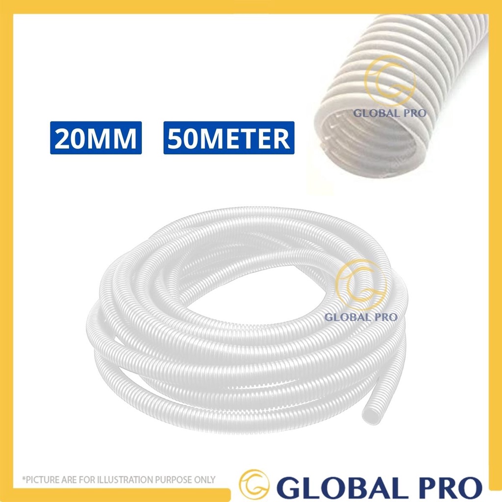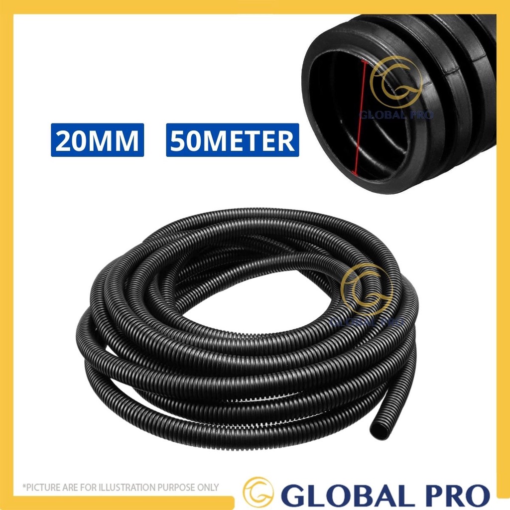 Cyber 20mm 50 MTR (Black / White) PVC Conduit Flexible Corrugated Tube Hose Plastic Cover for Electrical Wires & Cables