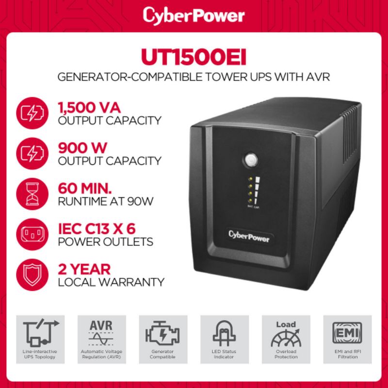 Cyberpower UT1500EI 1500VA 900W UPS Backup Battery Power Supply with Build-in AVR Server