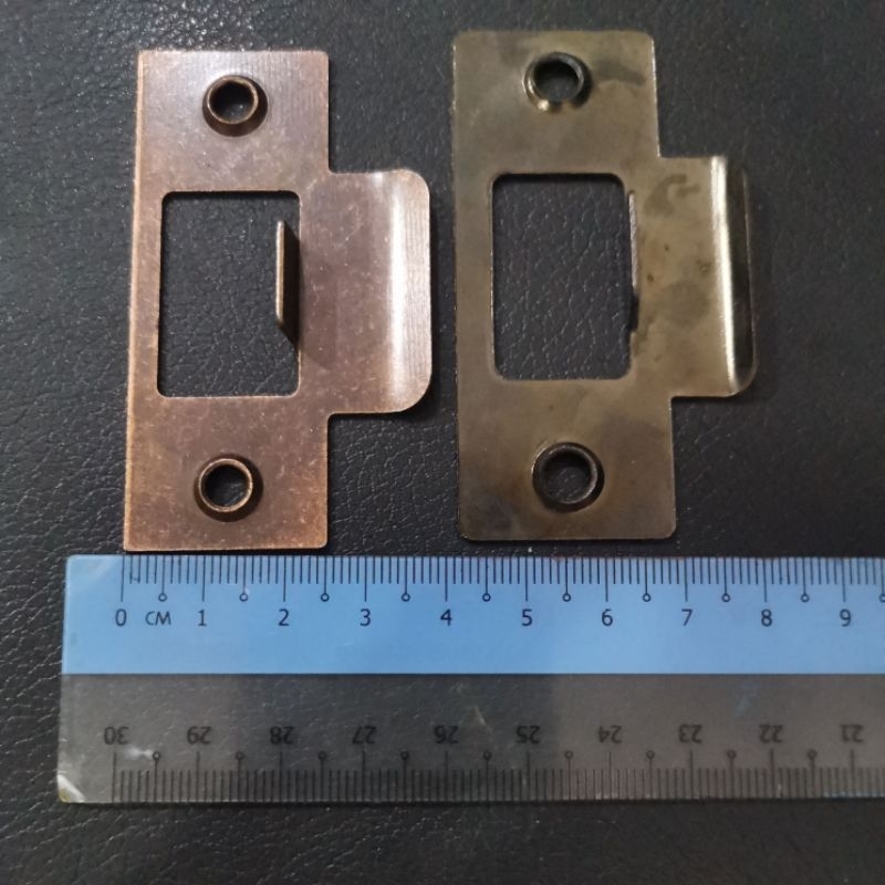 Cylindrical door lock strike plate. (Bronze colour)