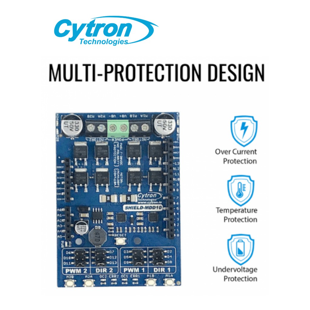 Cytron Motor Driver 10A (Max 30A) 7-30V 2 Channels Shield for Arduino Maker UNO Robotic High Quality READY STOCK