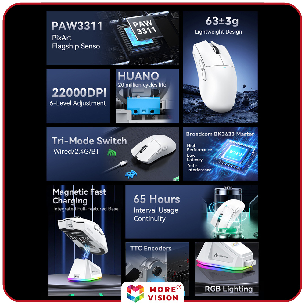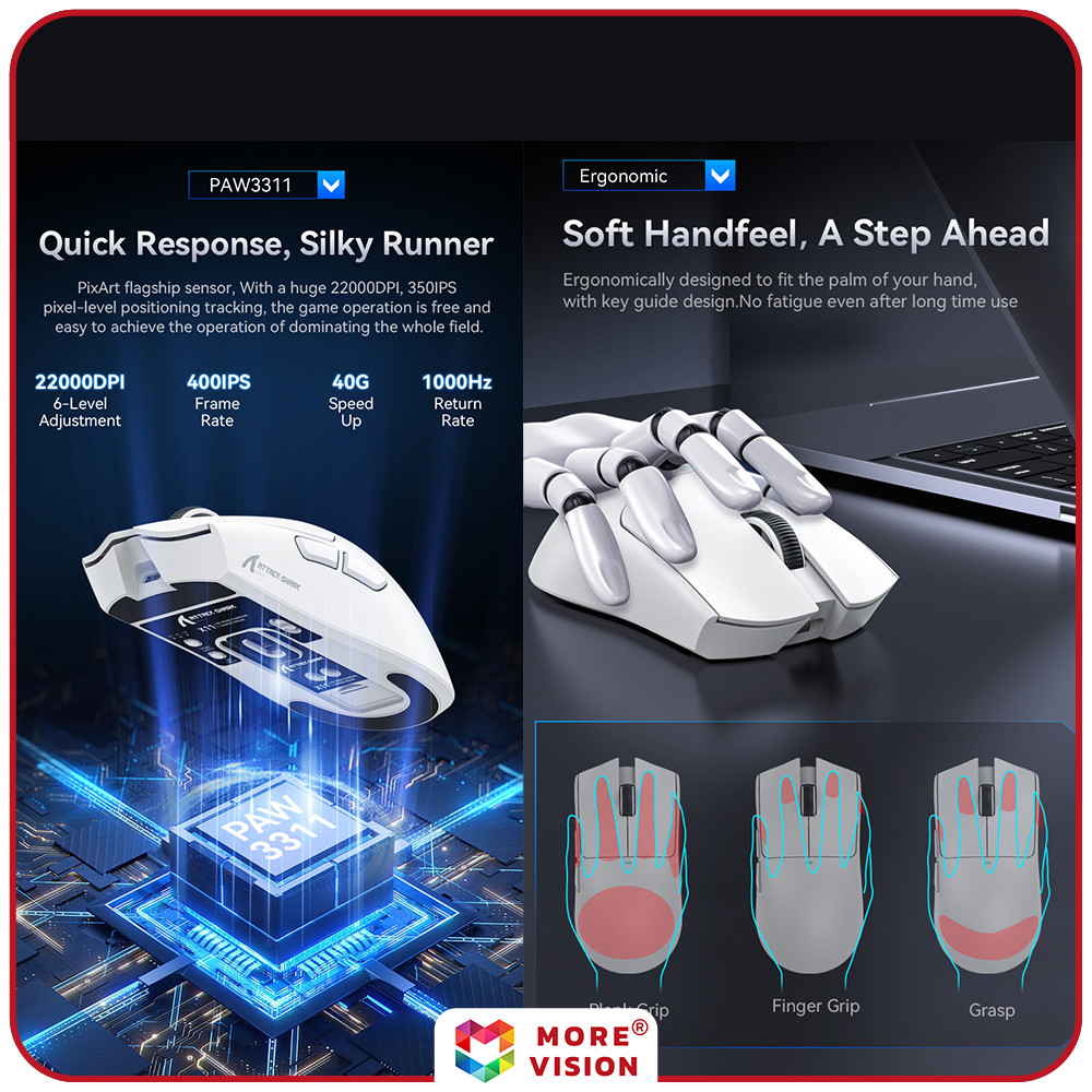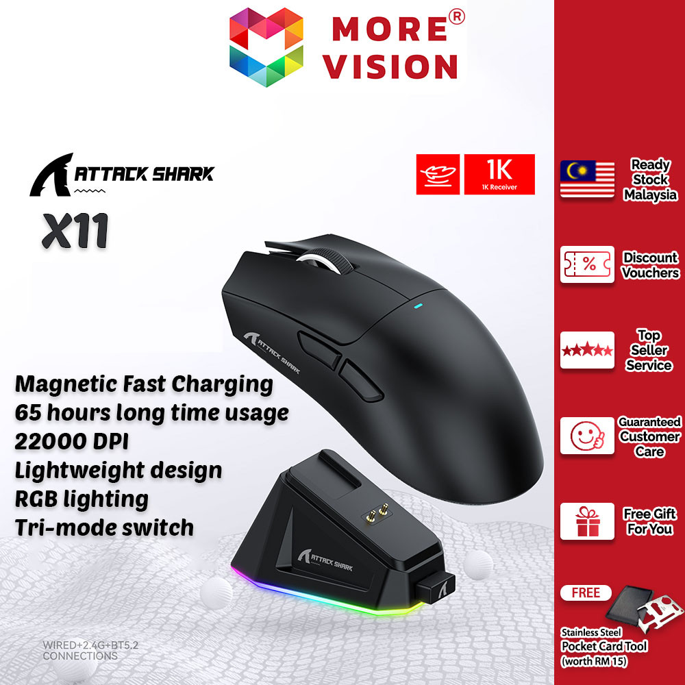 Attack Shark X11 Wireless Mouse Three Modes Bluetooth Cable 2.4G PAW3311 RGB Magnetic Charging Gaming E-sports PC Mice