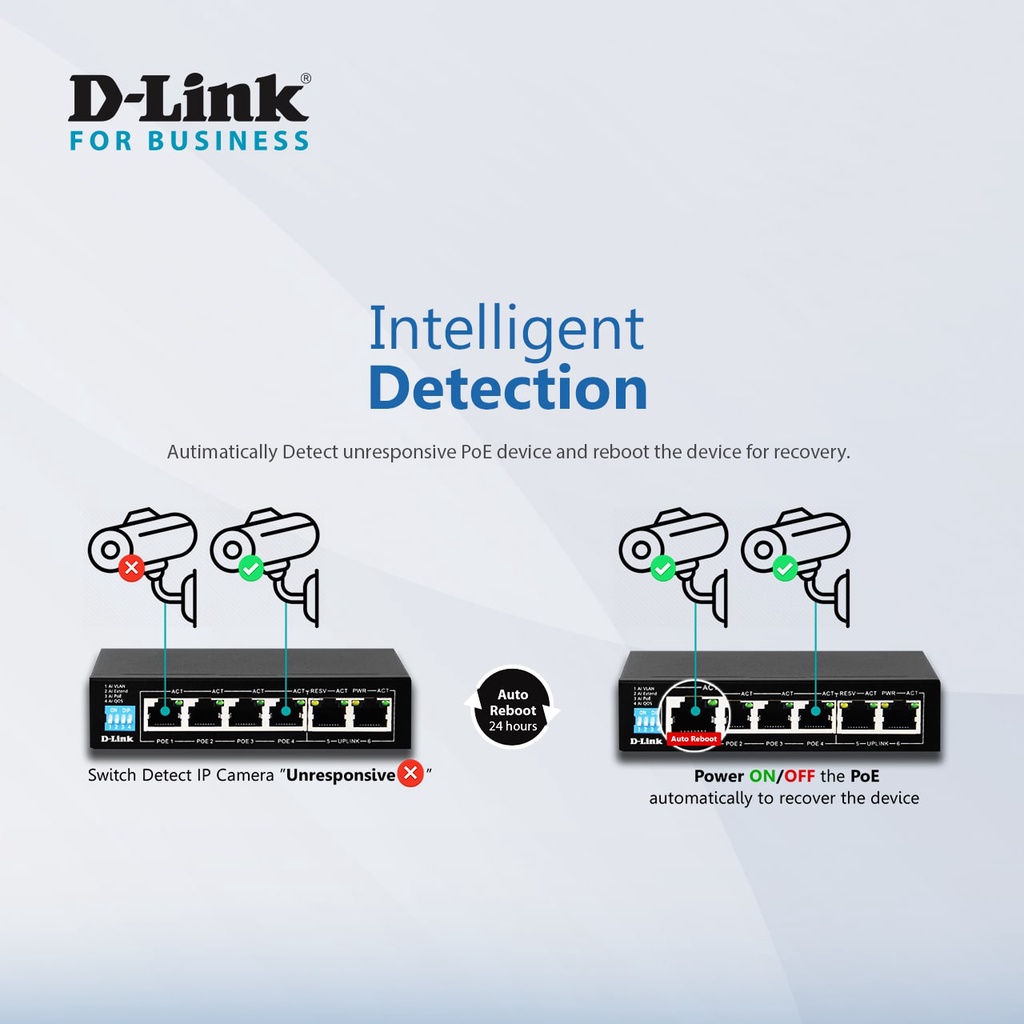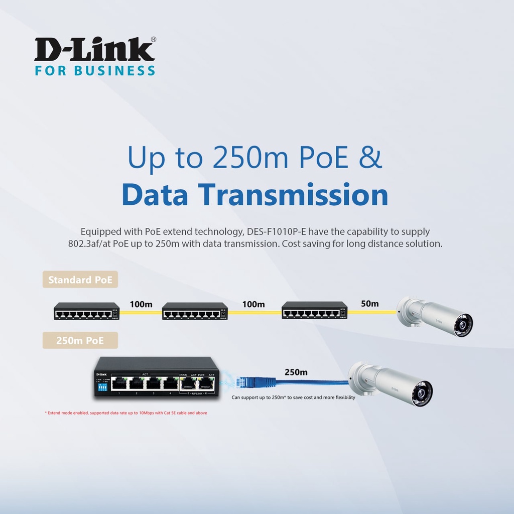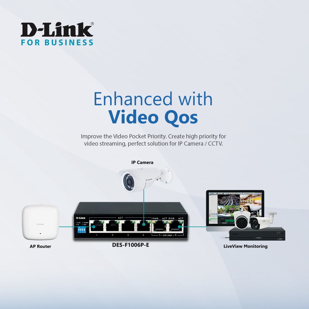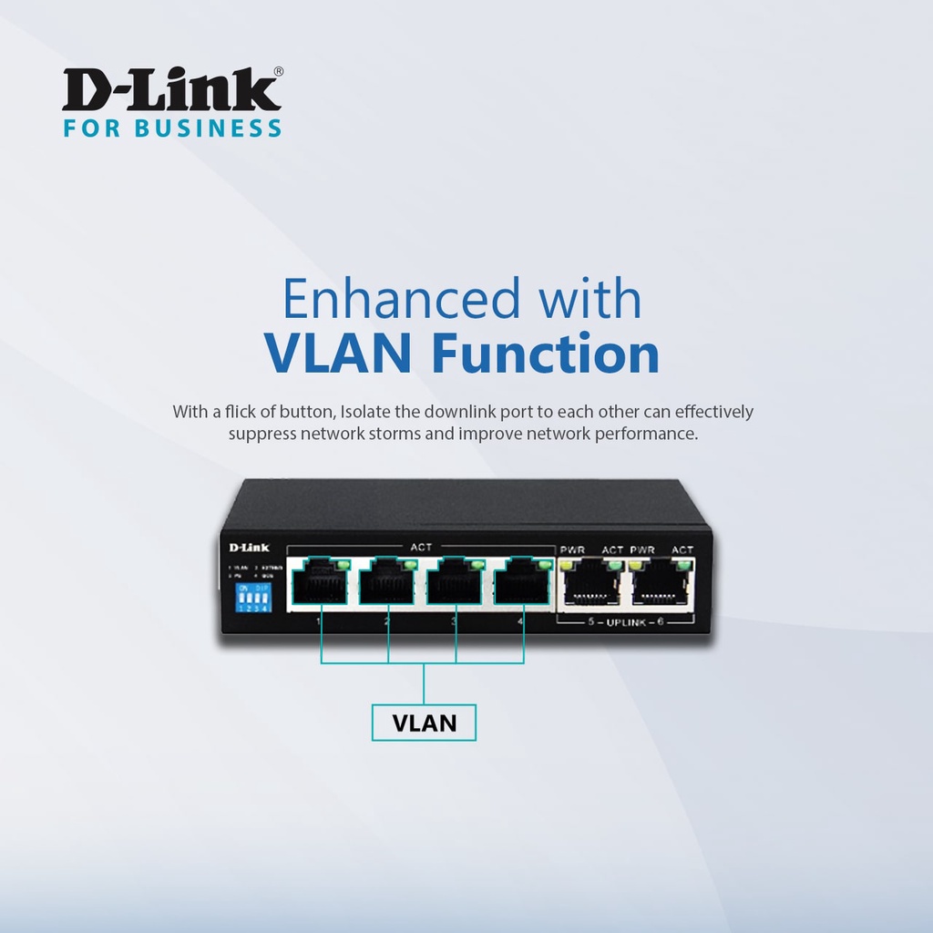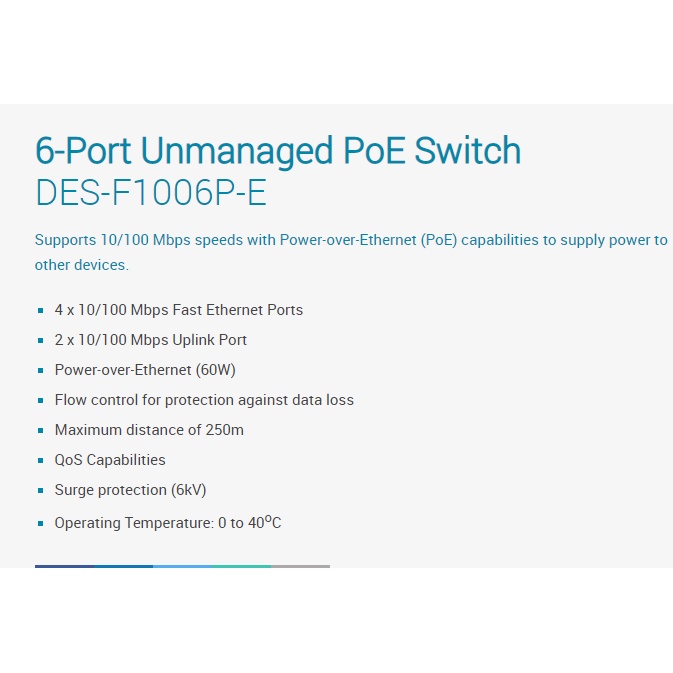 D-Link DES-F1006P-E 250M 6-Port 10/100 Switch with 4 PoE Ports and 2 Uplink Ports Power Budget 60W