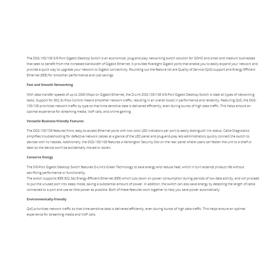 D-Link DGS-105GL 5 Port 10/100/1000Mbps Gigabit Unmanaged Switch with Metal Case