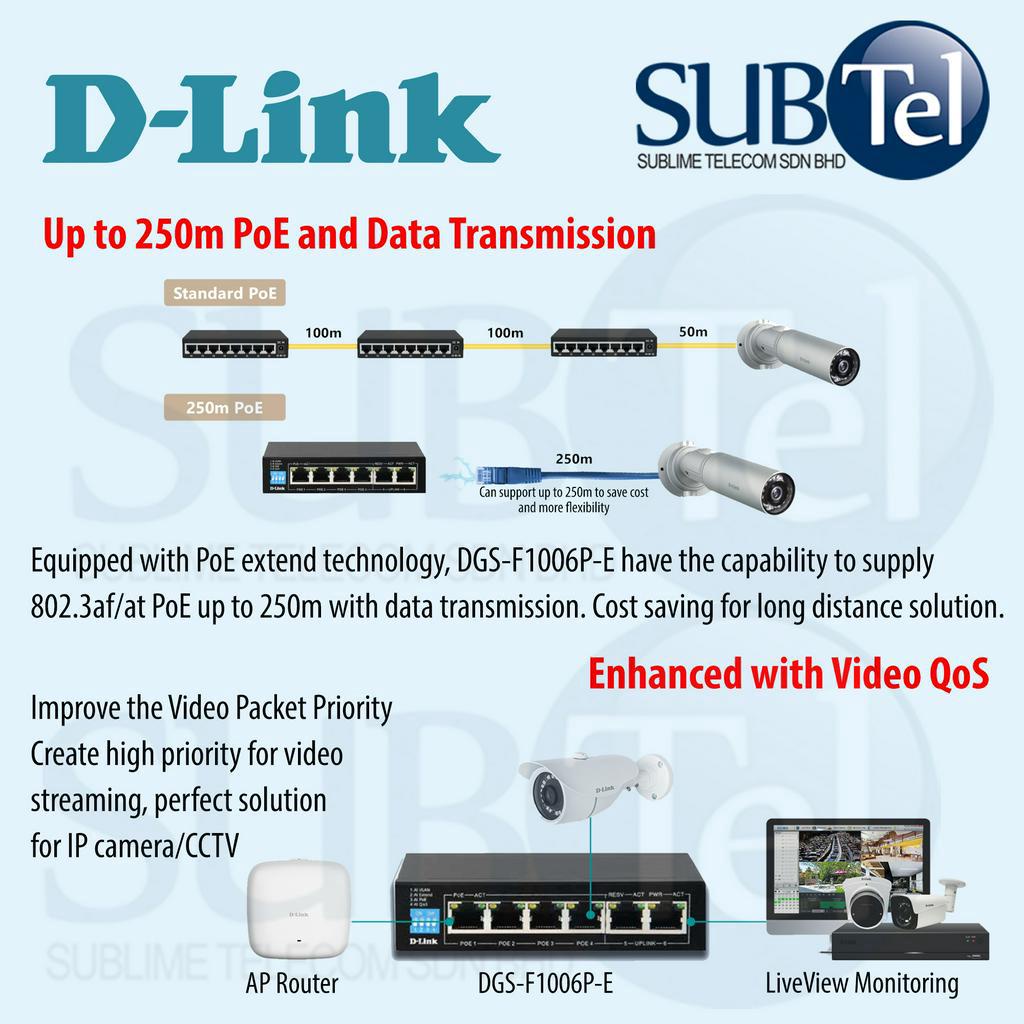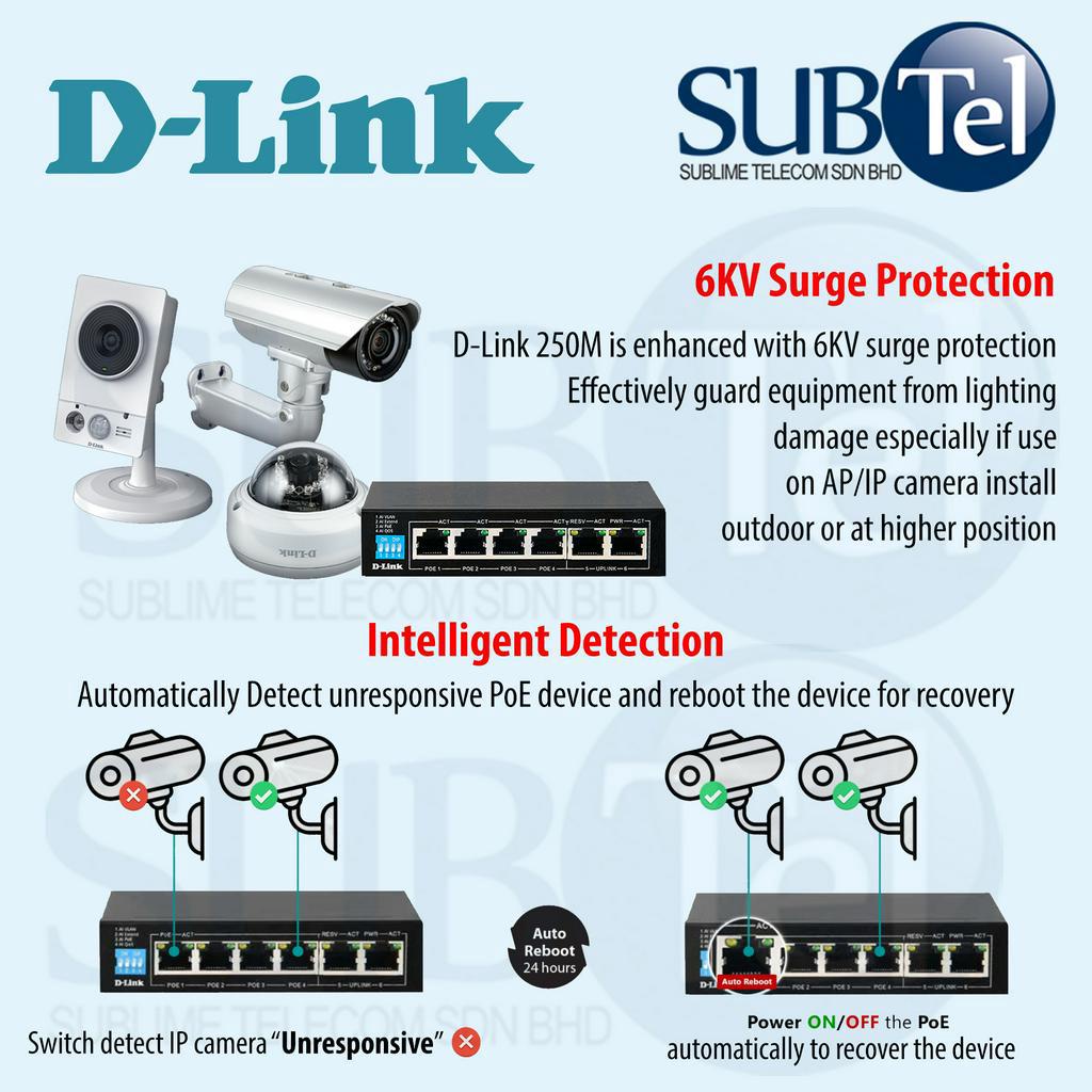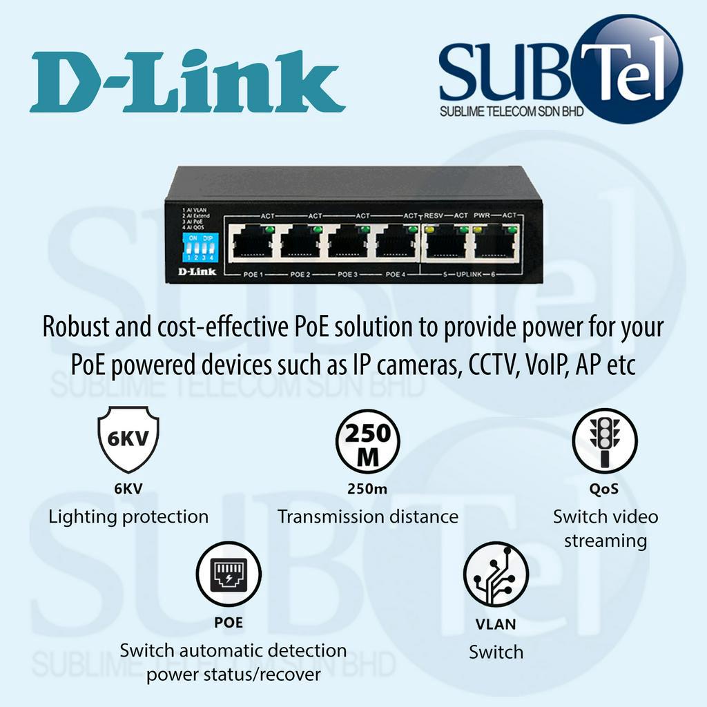 D-Link DGS-F1006P-E 6-Port Gigabit Switch with 4 PoE and 2 Uplink Ports 6 Port Networking DGS DGS-F1006P-E/B