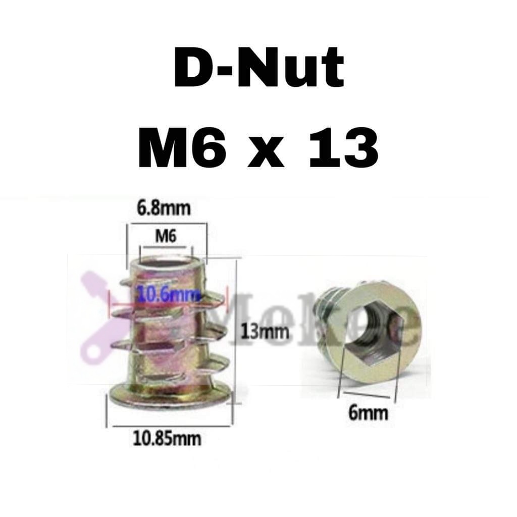 D-nut E-nut M6x13 or M8x13 threaded wood furniture screw bolt insert with flange