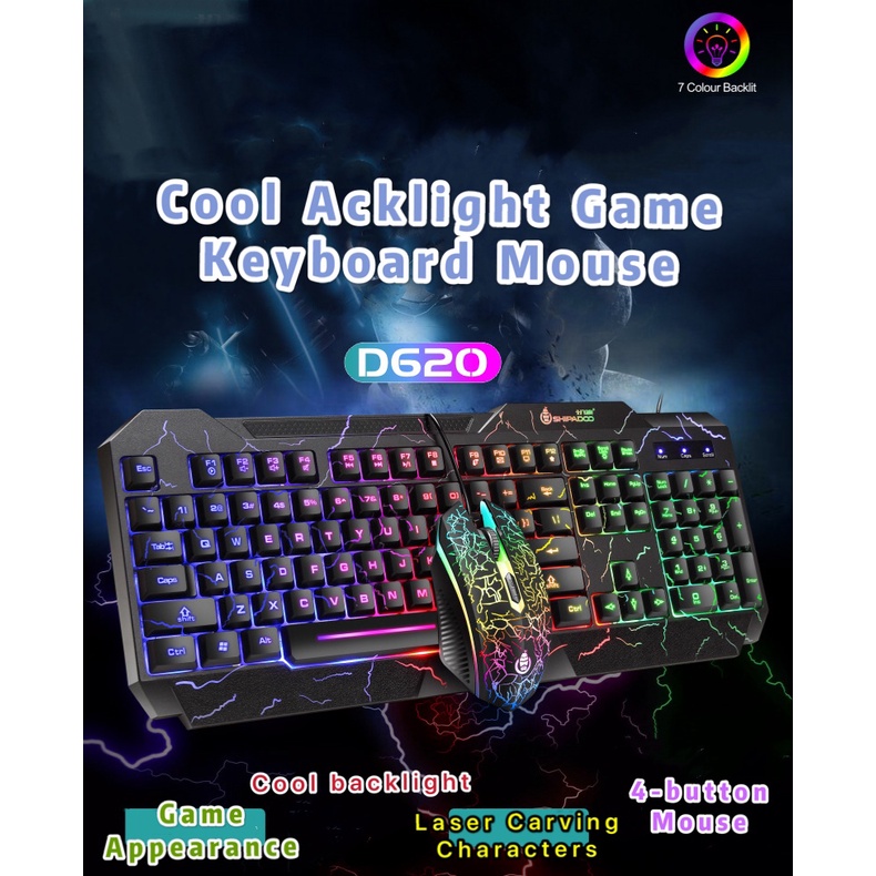 D620 LED Gaming Keyboard and Mouse Set Rainbow RGB Backlight Mechanical Keyboard