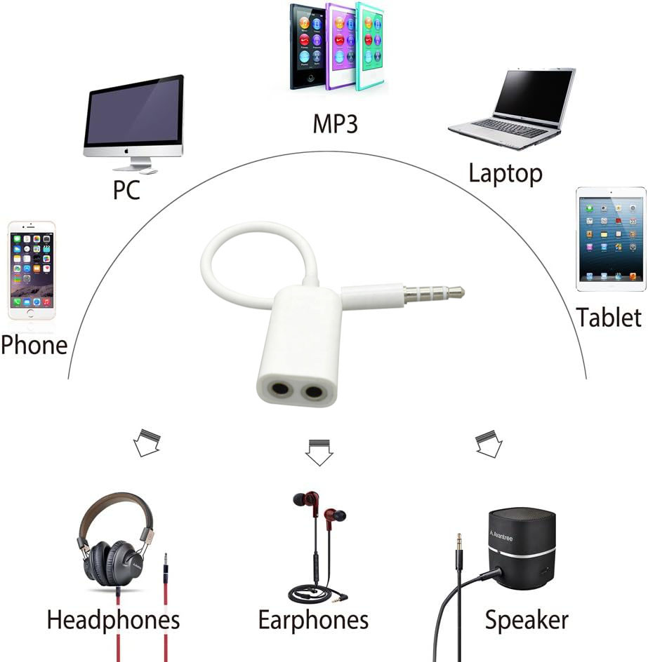 D71 Two Way 3.5Mm Dual Headphone Jack Splitter, Aux Stereo Earphone Earbuds Y Audio Split Adapter Cable, Compatible With , Phones And Tablets
