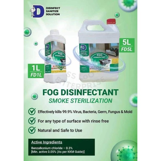 DACHO Disinfect Sanitize Solution Fog & Smoke All Surface Disinfectant Solution 1L / 5L Fogging solution