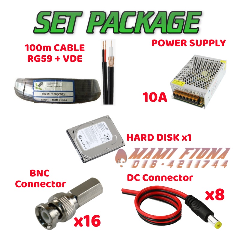 DAHUA 5.0MP 8-CHANNEL CCTV FULL PACKAGE SET - DVR+CAMERAx8+HDD+12V10A+POWER SUPPLY+BNC+DC CONNECTOR+RG59+CABLE