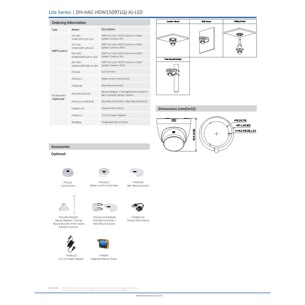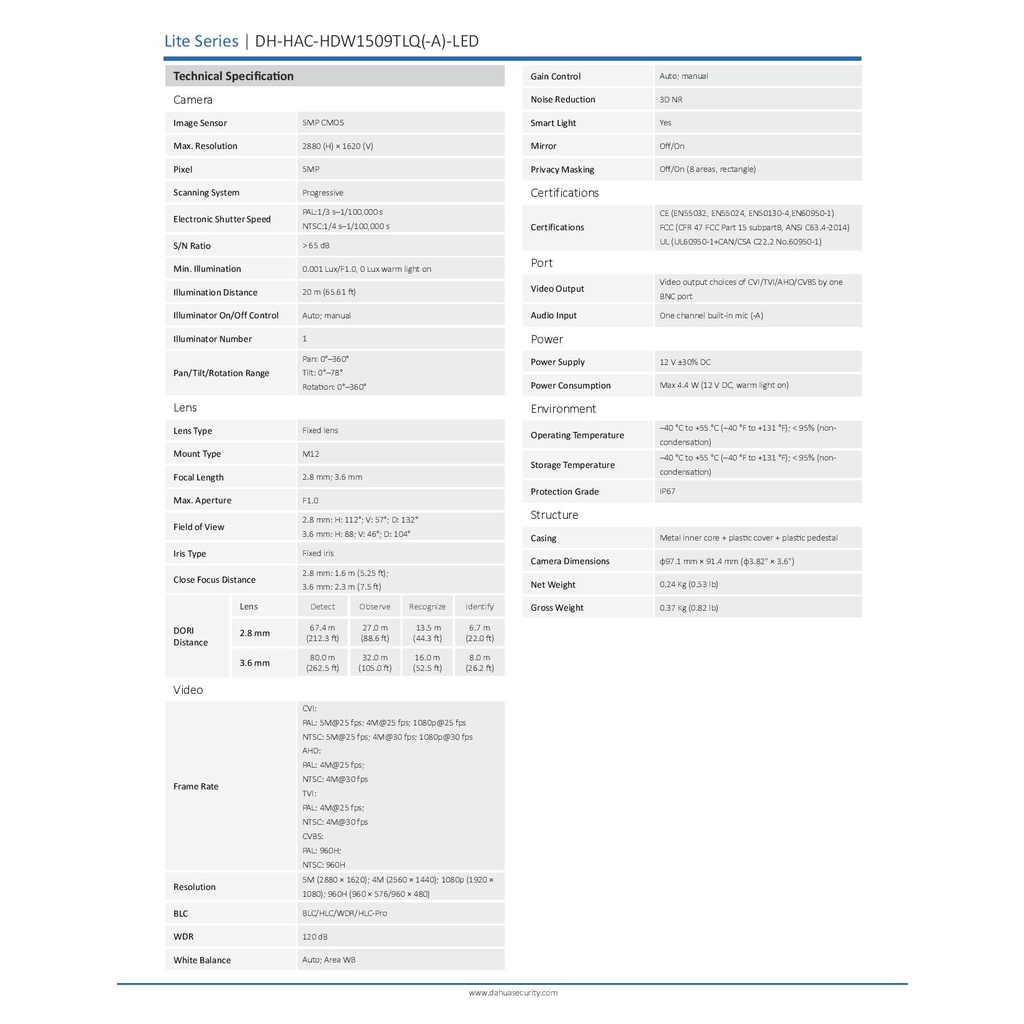 DAHUA 5MP FULL-COLOR HDCVI ANALOG BUILT IN MIC TURRET DOME CAMERA - HDW1509TLQ-A-LED