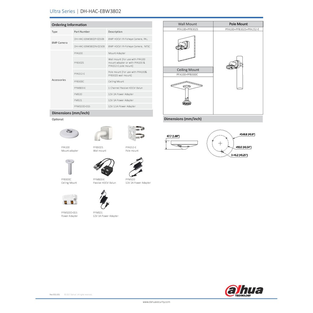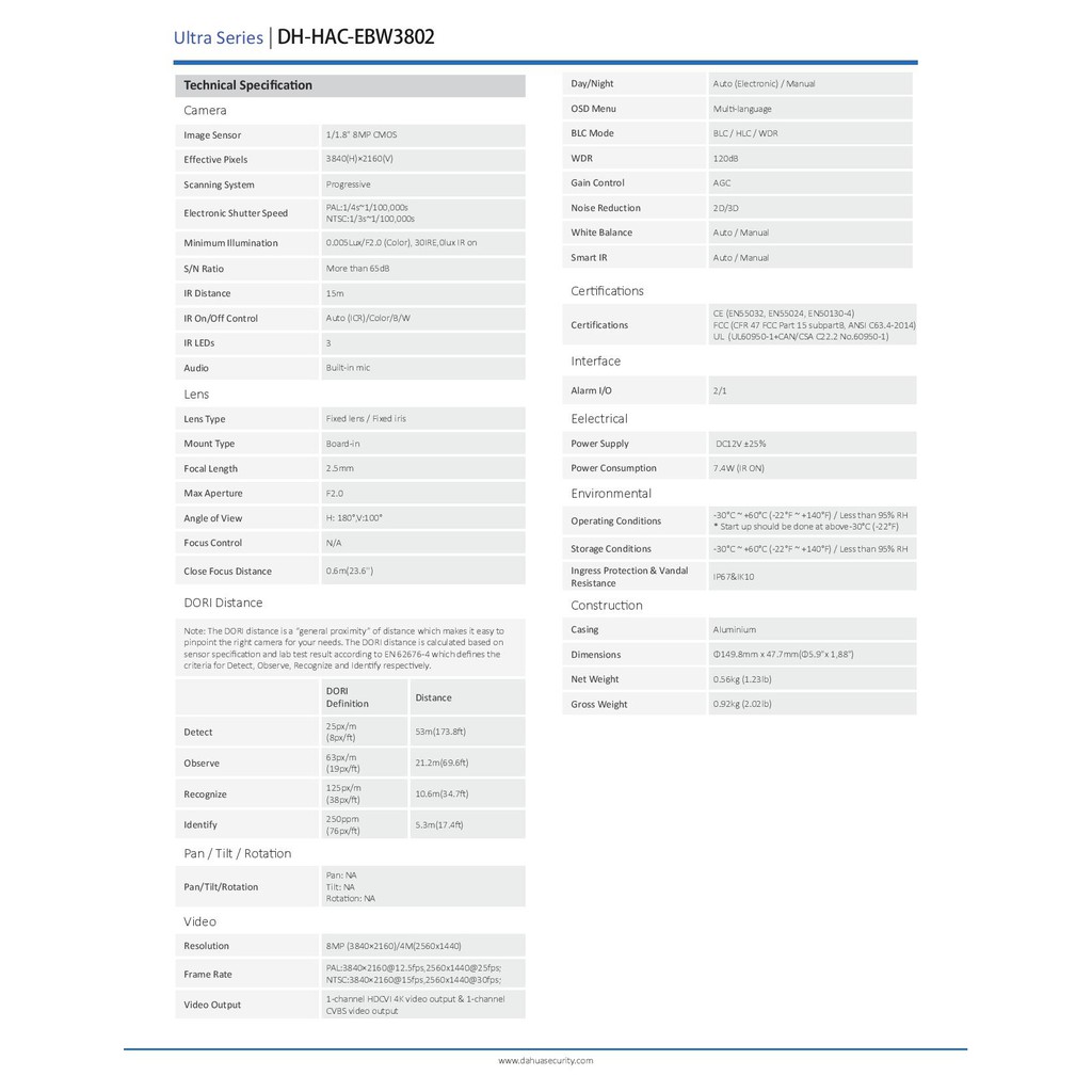 DAHUA 8MP ANALOG EBW3802 4K IR VANDAL-PROOF HDCVI FISHEYE MICROPHONE (BUILT-IN MIC) TURRET DOME CAMERA