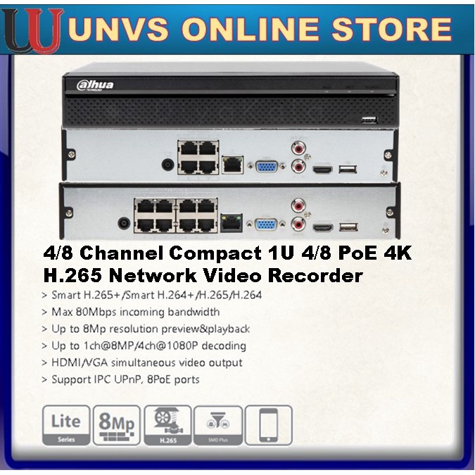 DAHUA NVR IP POE 4/8 CHANNEL 4CH/8CH IPPOE DIGITAL CAMERA (DVR UP TO 8MP)(P2P ONLINE VIEW FOR PHONE)